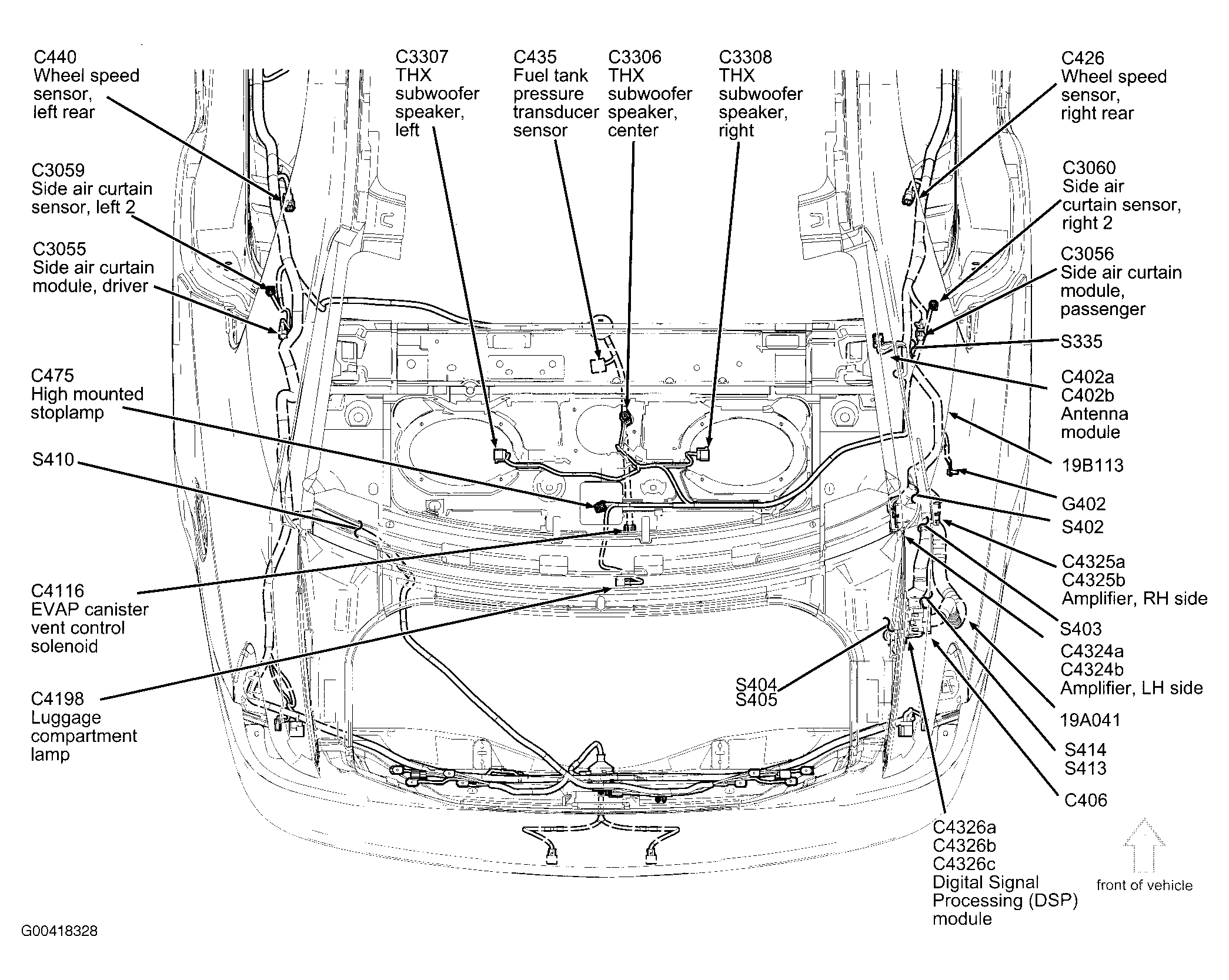 | Digital Signal Processing (DSP) Module | Right rear of trunk compartment. See Figure. |
