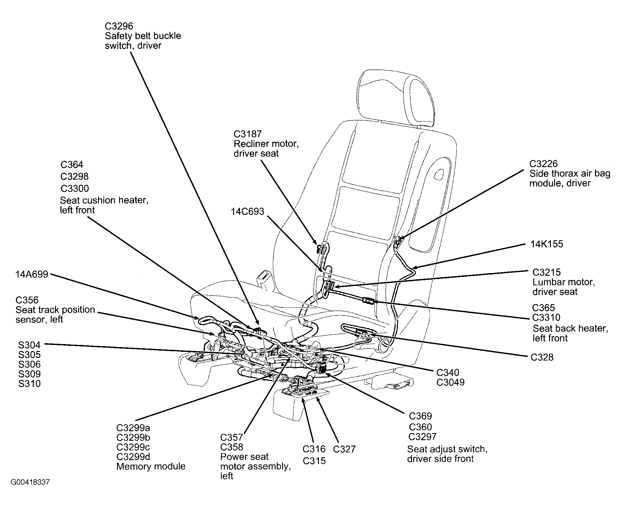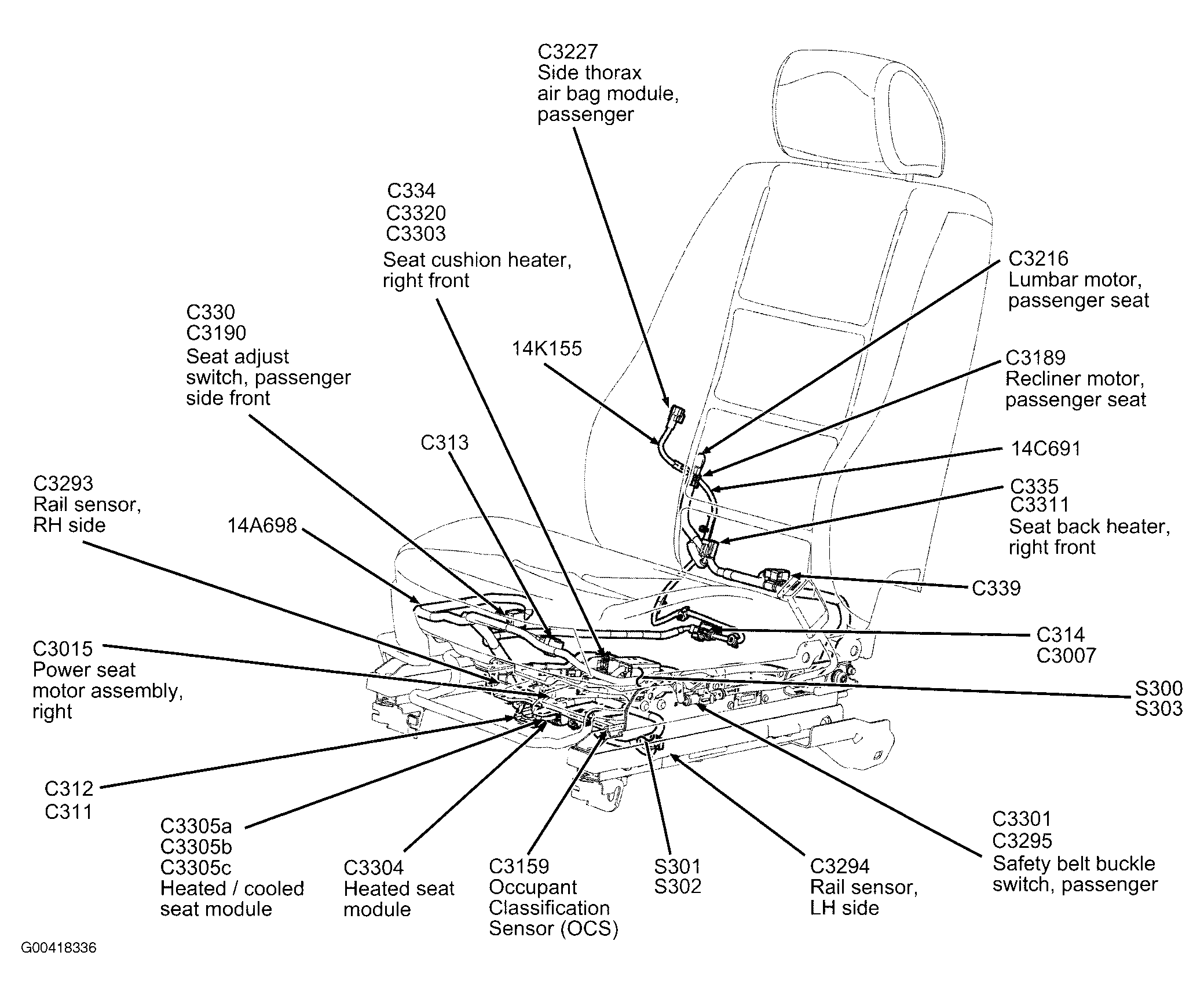 | Heated / Cooled Seat Module | Under seat bottom. See Figure. |