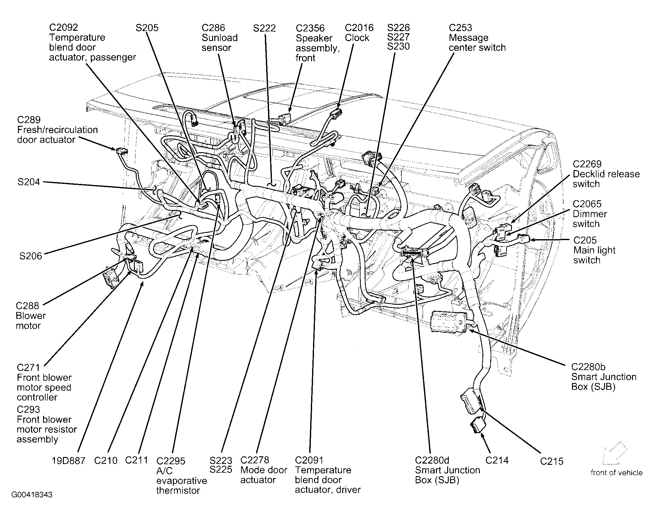 | Side Air Curtain Module (Driver's) (Fusion) | Base of left "C" pillar. See Figure. |