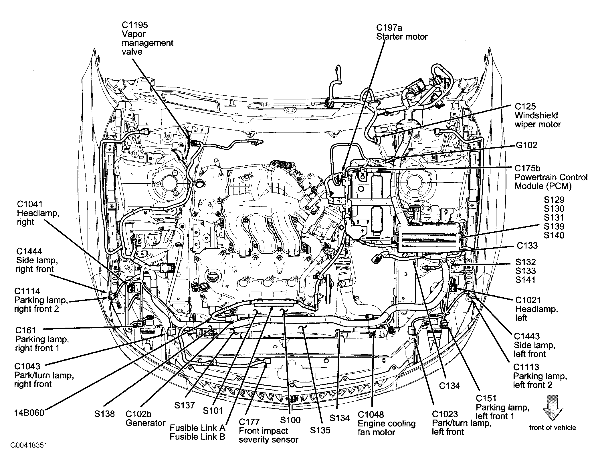 | Powertrain Control Module (PCM) (3.0L) | Left rear of engine compartment. See Figure. |