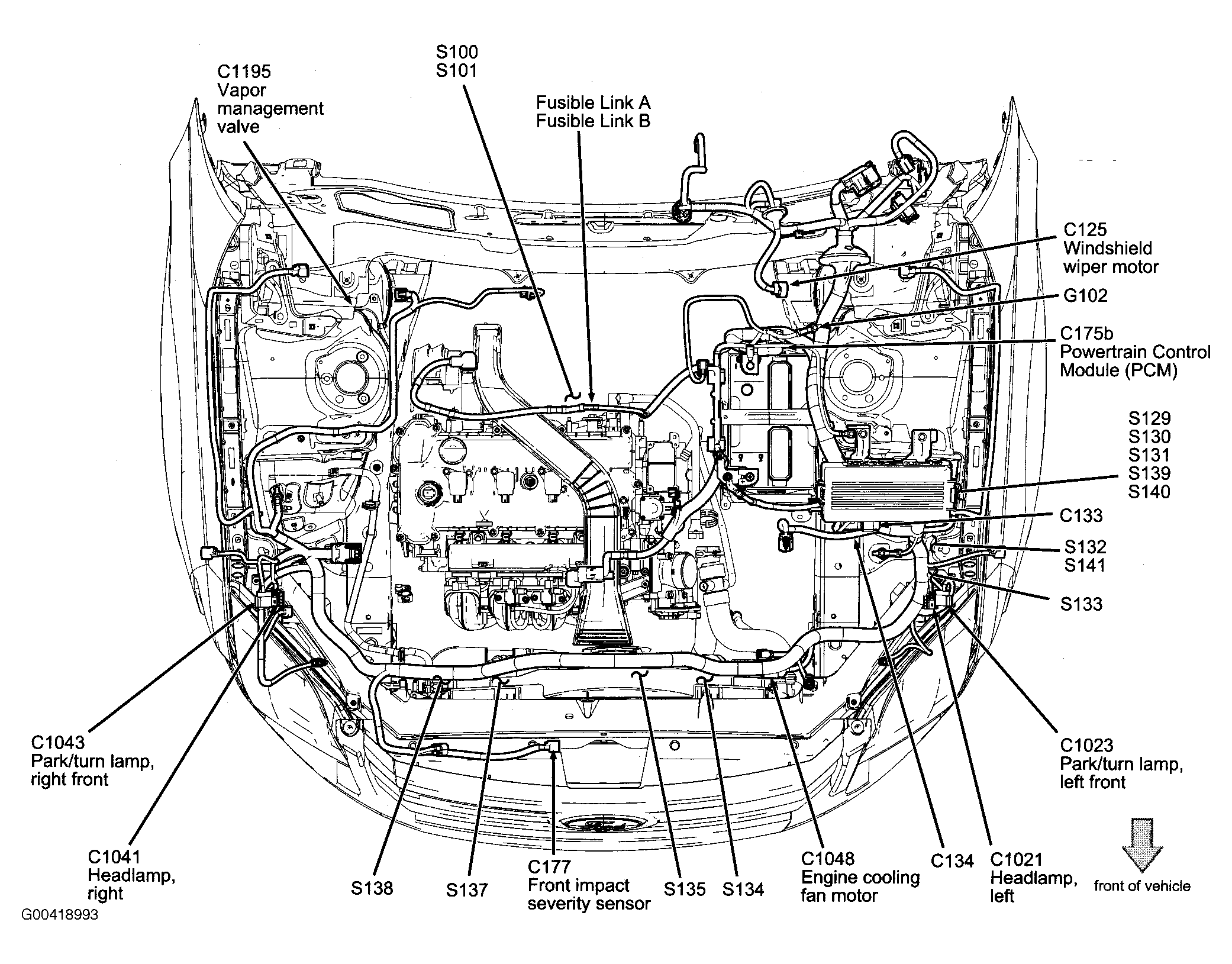 | Powertrain Control Module (PCM) (2.3L) | Left rear of engine compartment. See Figure. |