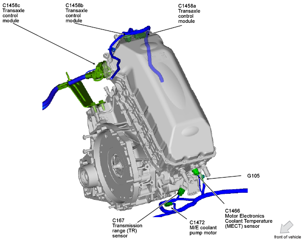| Transaxle Control Module (AW21) | On transaxle. See Figure. |