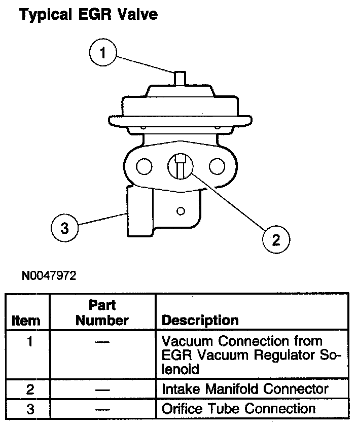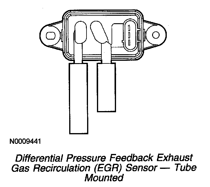 The orifice tube assembly is a section of tubing connecting the exhaust system to the intake manifold. The assembly provides the flow path for the EGR to the intake manifold and also contains the metering orifice and 2 pressure pick-up tubes. The internal metering orifice creates a measurable pressure drop across it as the EGR valve opens and closes. This pressure differential across the orifice is picked up by the differential pressure feedback EGR sensor which provides feedback to the PCM.