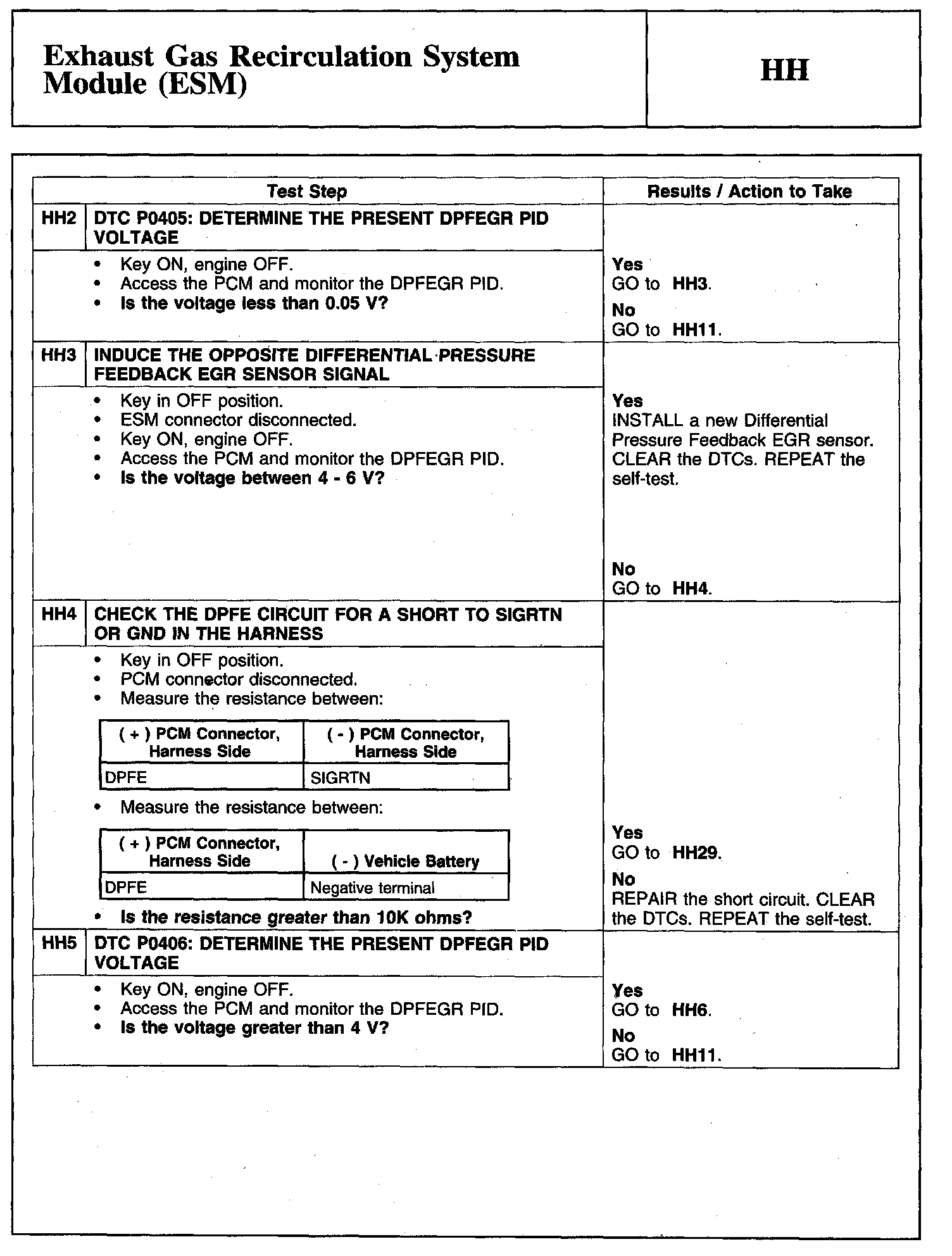 Home >> Lincoln >> 2007 >> MKX AWD V6-3.5L >> Repair and Diagnosis >> Powertrain Management >> Computers and Control Systems >> Testing and Inspection >> Pinpoint Tests >> Tests HH: Exhaust Gas Recirculation System Module (ESM)