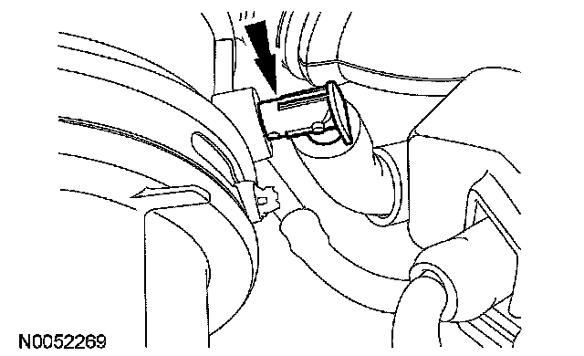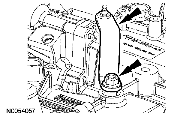 Remove the nut, rotate the transmission fluid filler tube counterclockwise 90 degrees and remove the transmission fluid filler tube.