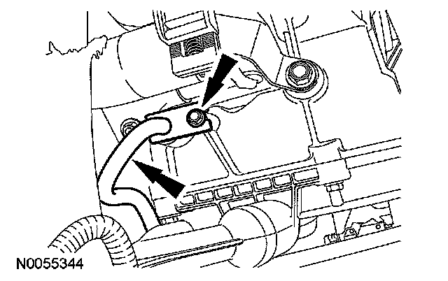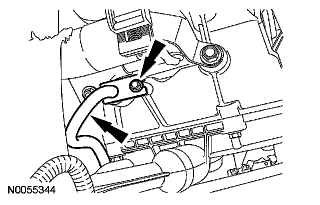 16. Position the transmission fluid cooler tube in place and install the bolt.