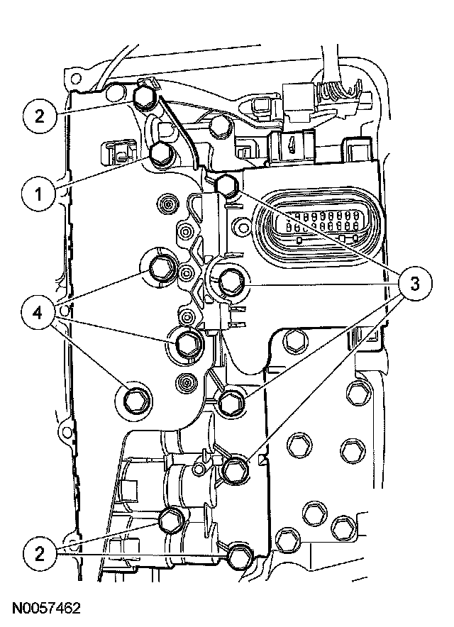 6. Tighten the solenoid body bolts in the sequence shown.