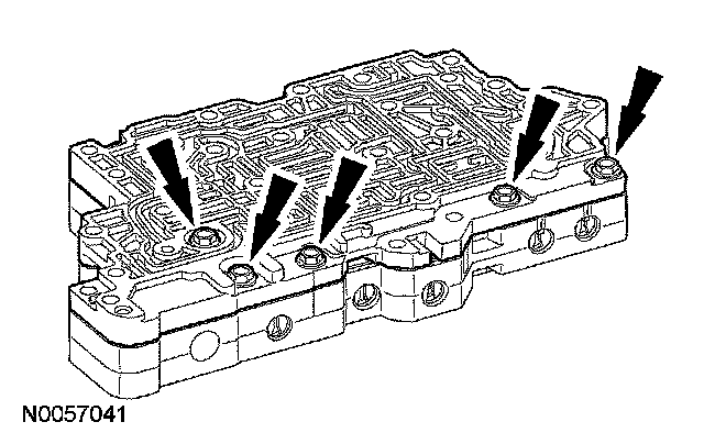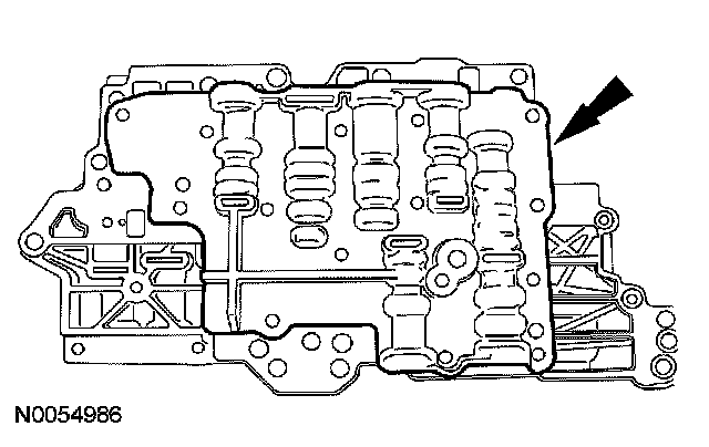 8. CAUTION: Remove the valves by tapping the valve body on the palm of the hand to slide the valves out of the bores. It may be necessary to remove the valves and springs using a pick. If it is necessary to use a pick, use extreme caution to prevent damaging the valves or valve bores. If necessary, disassemble parts of the main control valve body in small groups. Take special care when handling the main control components, since they are the most precise and delicate parts of the transaxle. Neatly arrange the parts as they are removed to avoid mixing similar pieces.