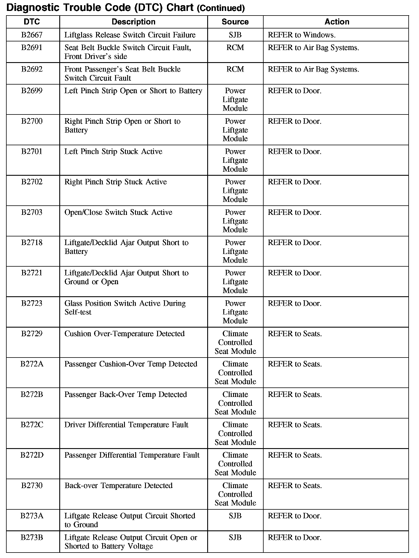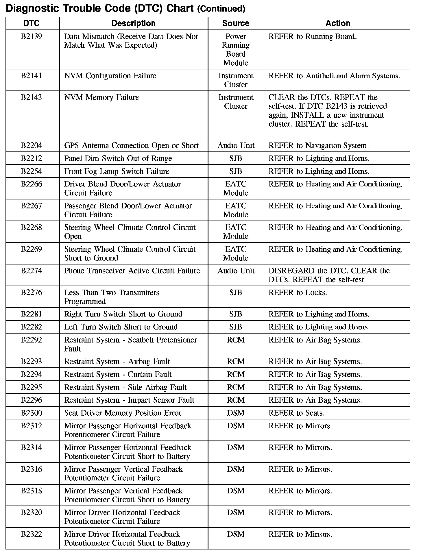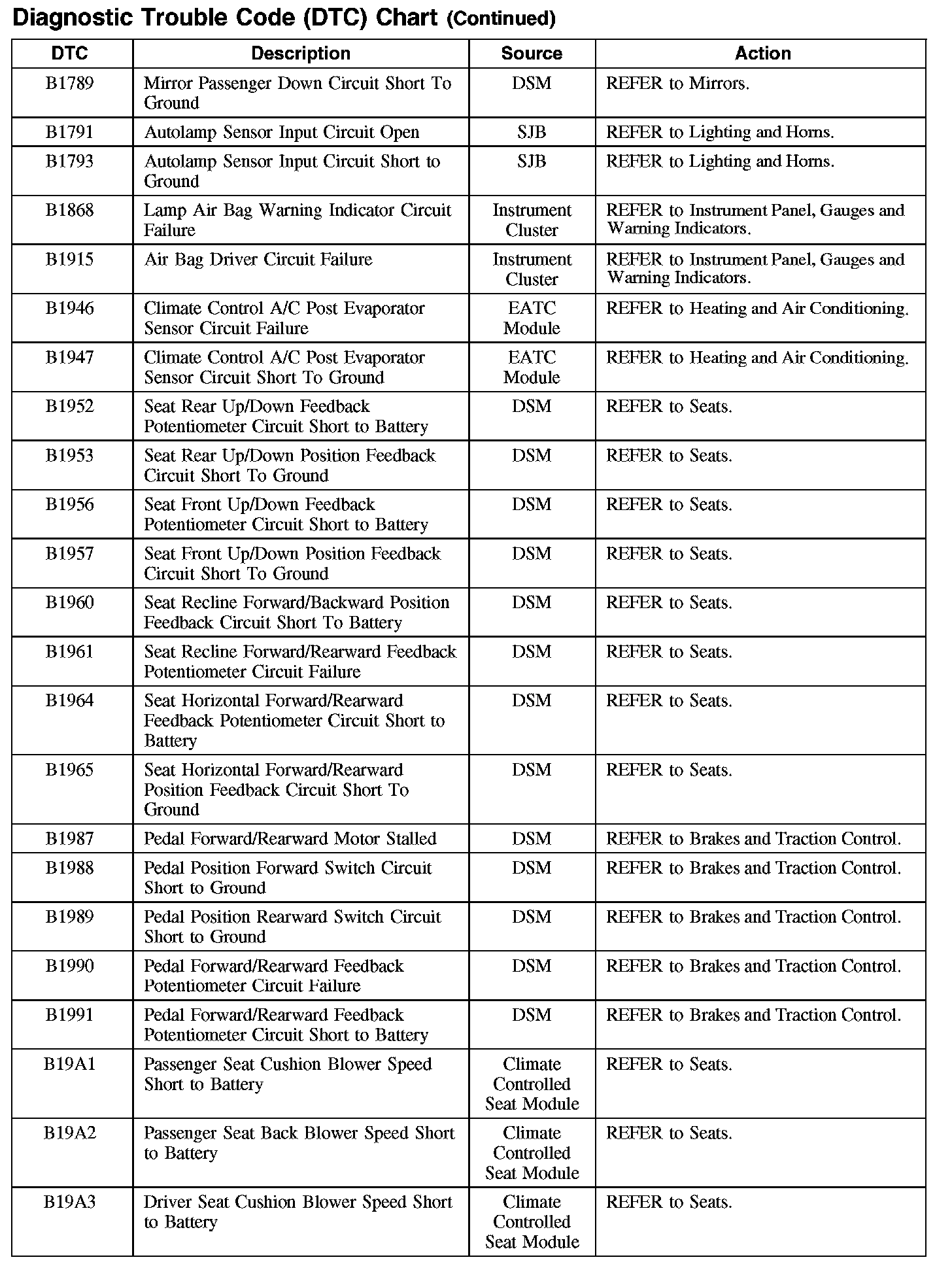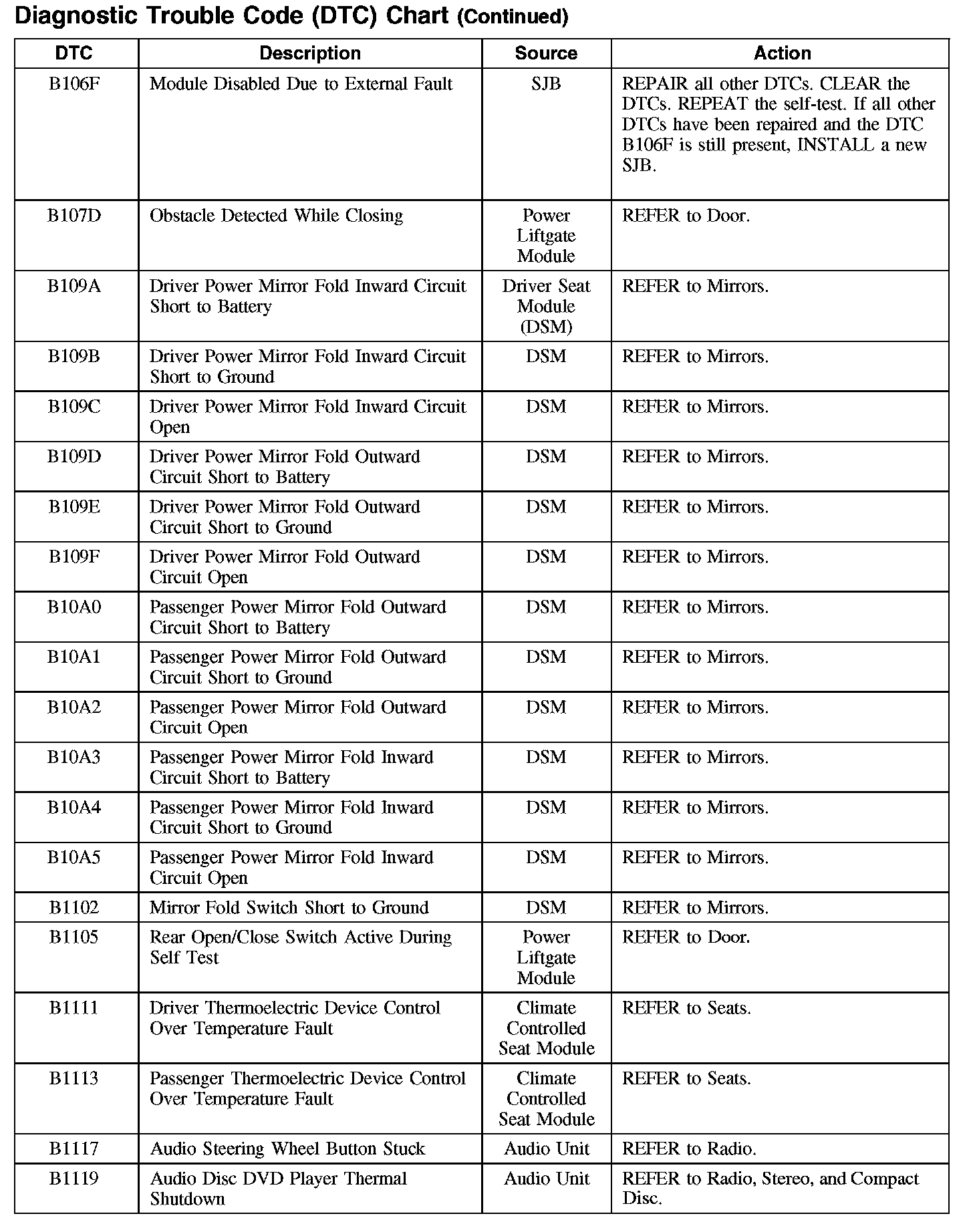 DIAGNOSTIC TROUBLE CODE (DTC) CHARTB1003-B106F: