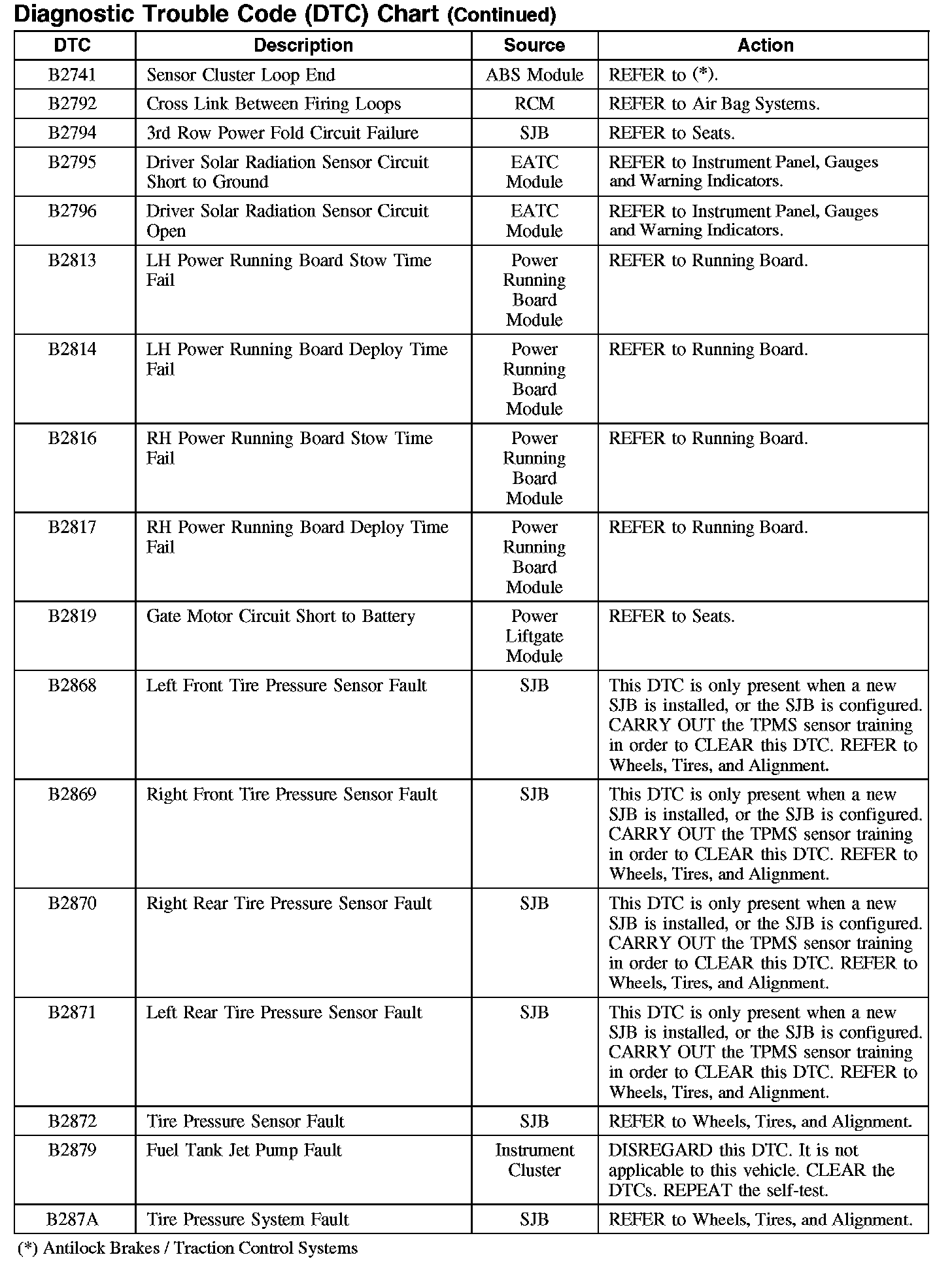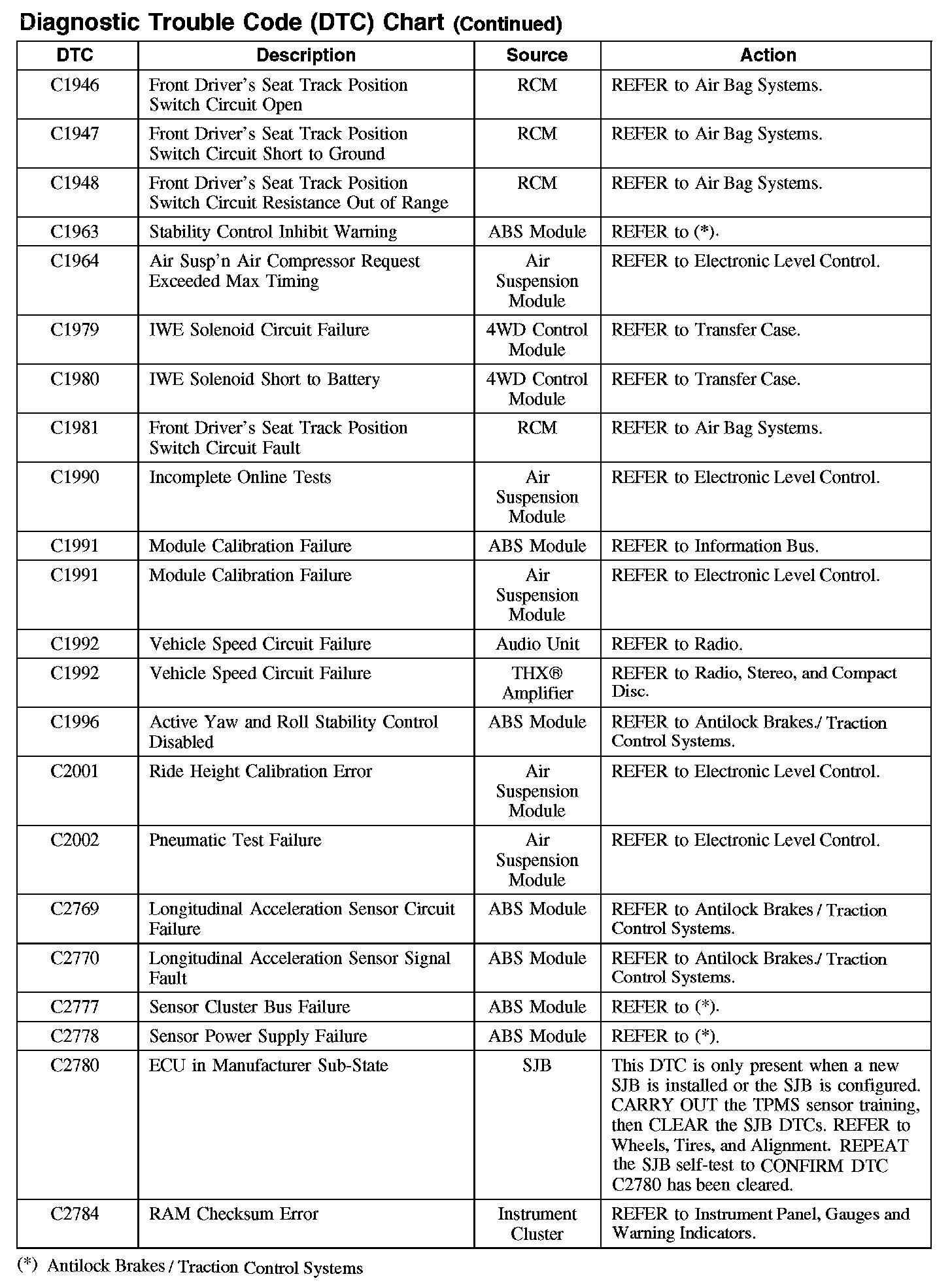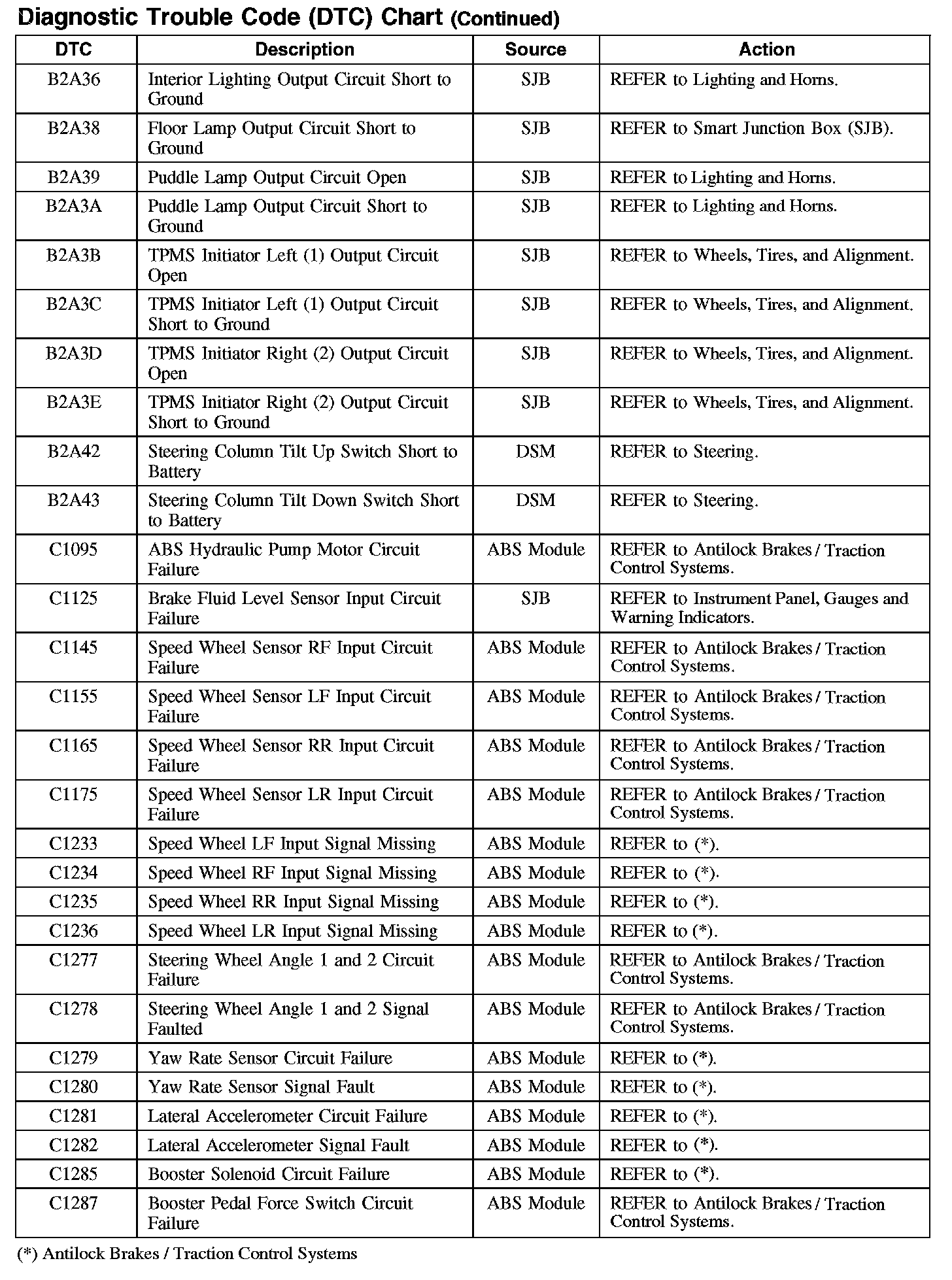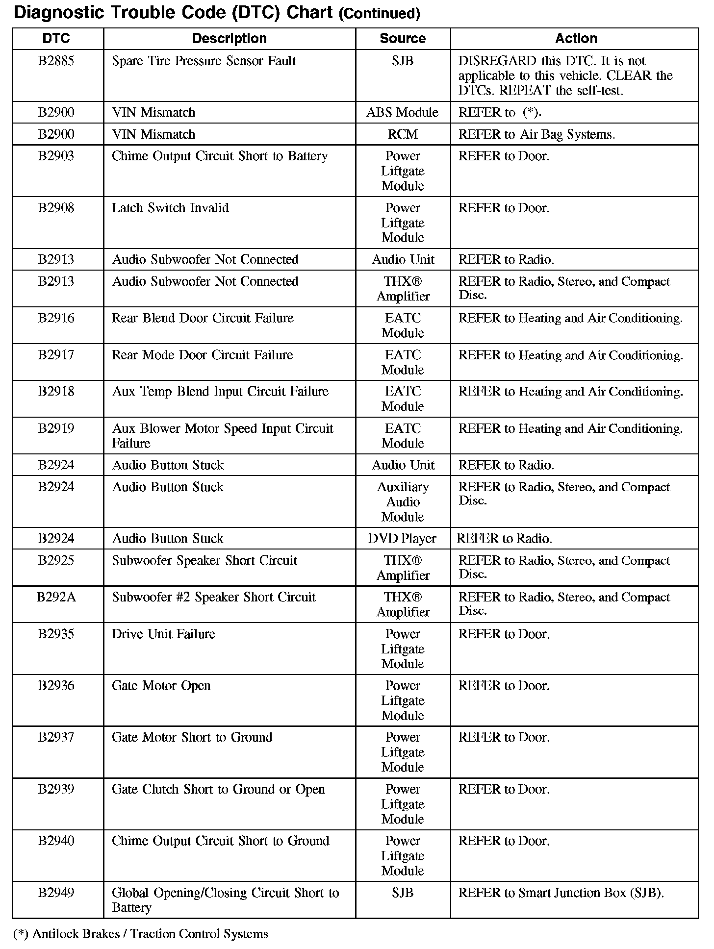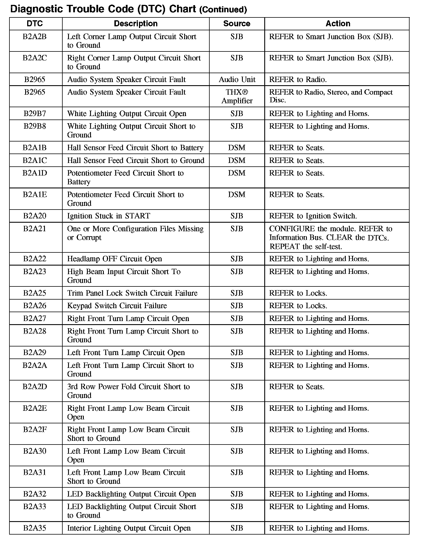 DIAGNOSTIC TROUBLE CODE (DTC) CHARTB1003-B106F: