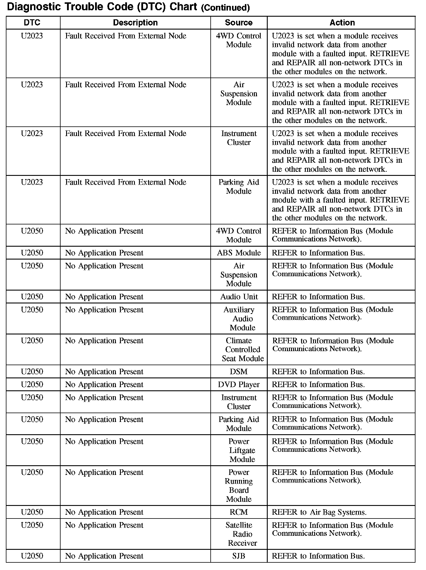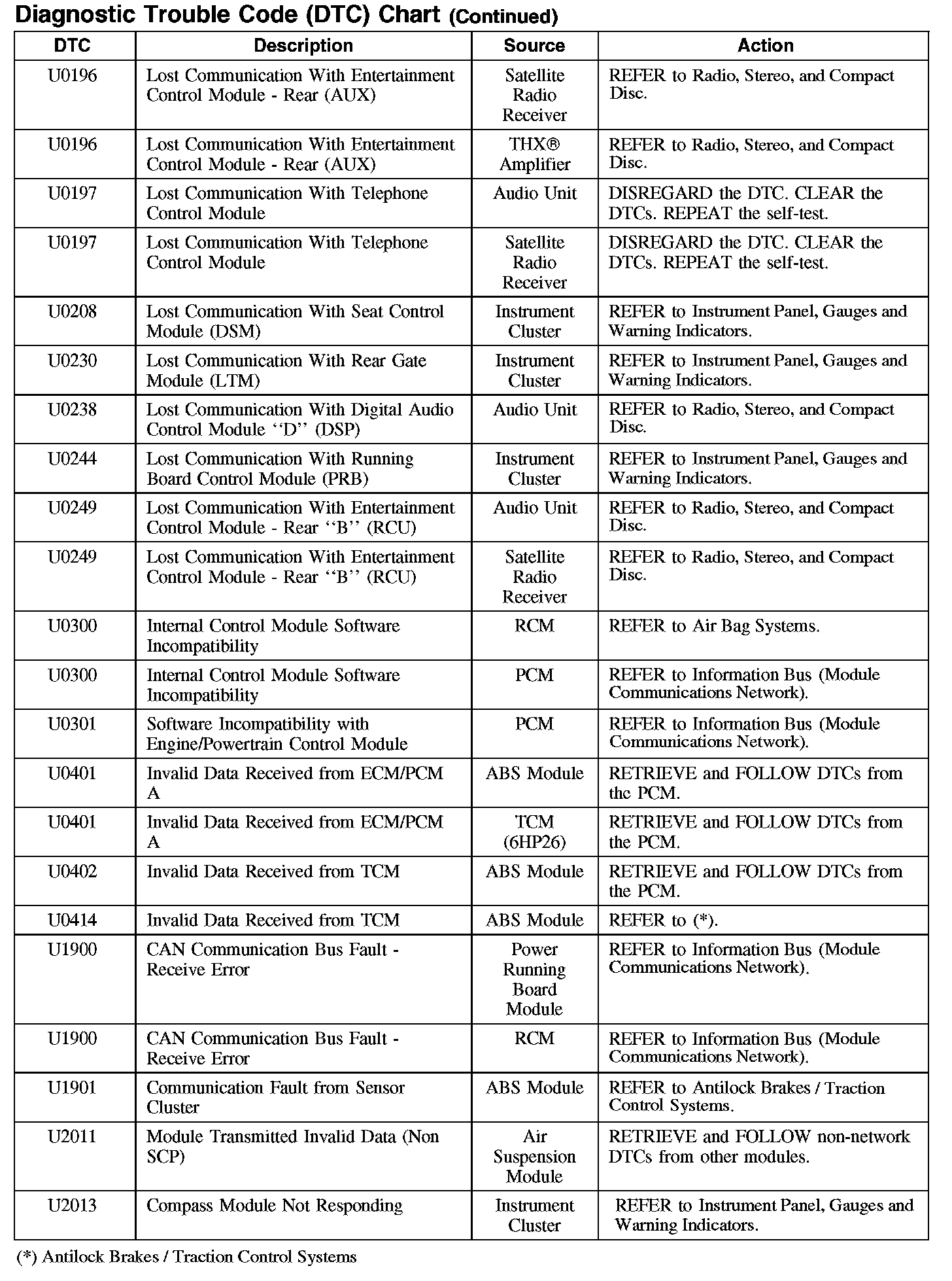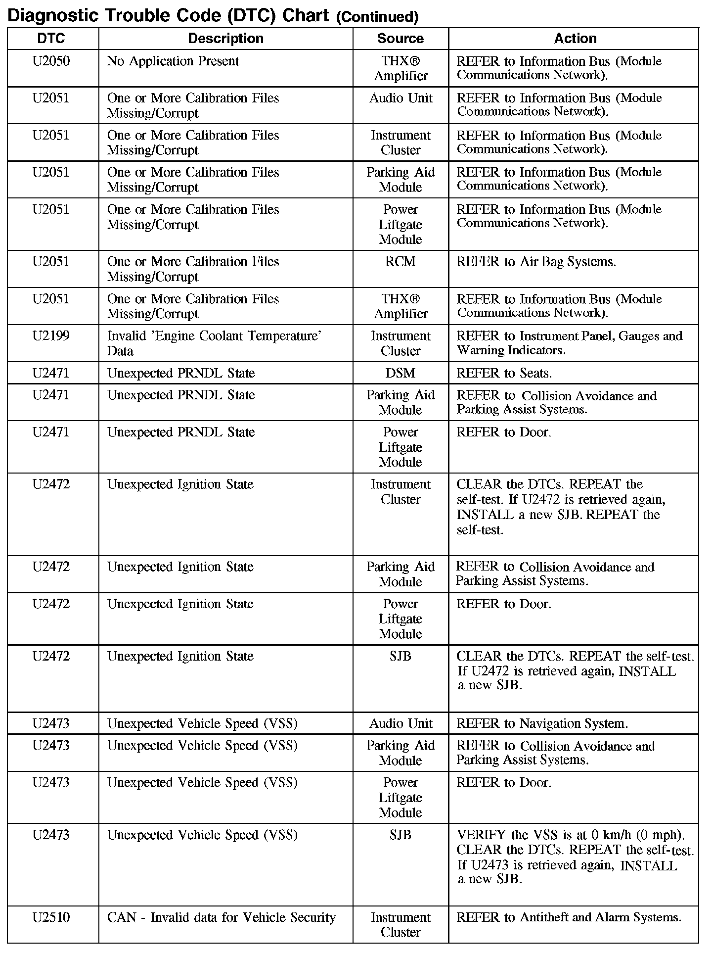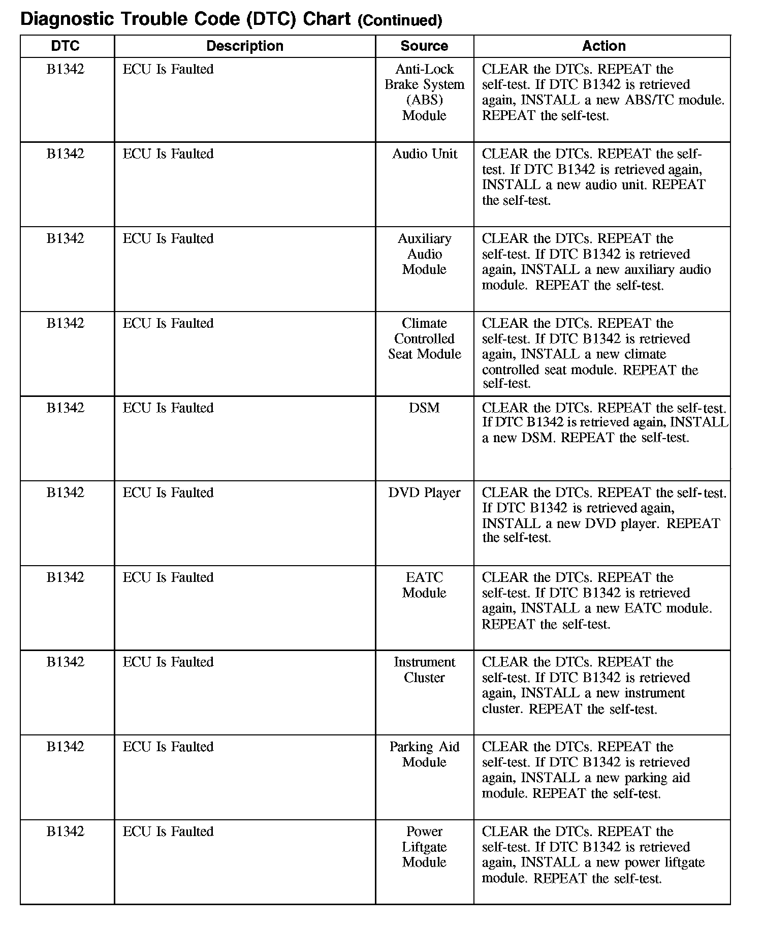 DIAGNOSTIC TROUBLE CODE (DTC) CHARTB1003-B106F: