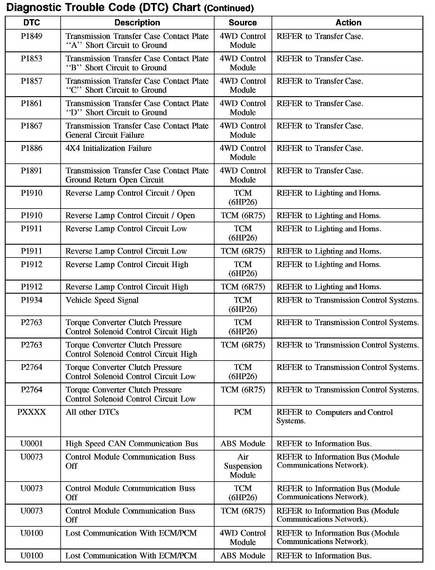 Diagnostic Trouble Code Descriptions
