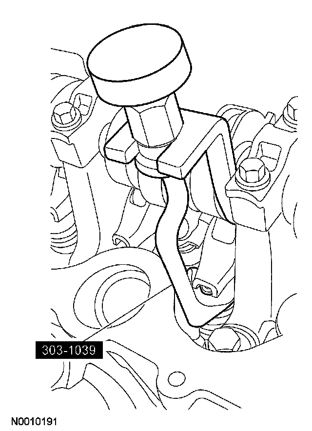 10. CAUTION: If one or both of the tensioner mounting bolts are loosened or removed, the tensioner-sealing bead must be inspected for seal integrity. If cracks, tears, separation from the tensioner body or permanent compression of the seal bead is observed, install a new tensioner.