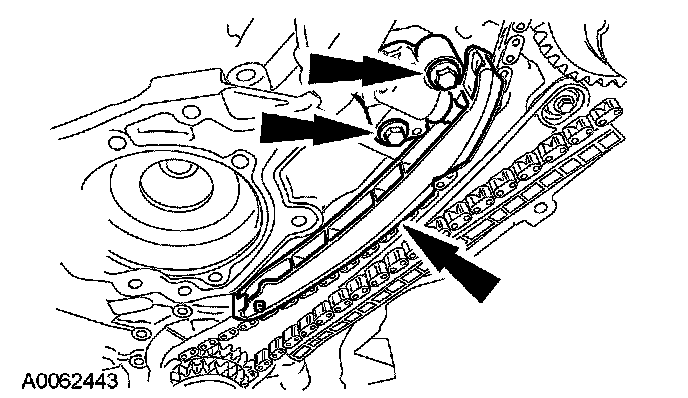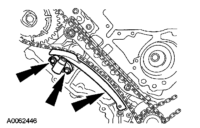 Remove the bolts, the LH timing chain tensioner and tensioner arm.