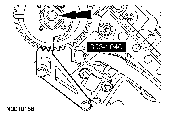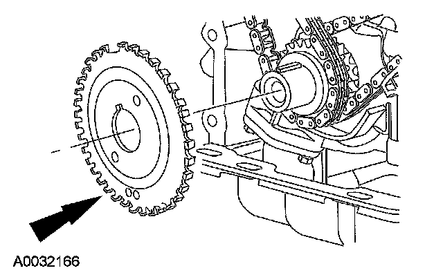 14. CAUTION: Damage to the variable camshaft timing (VCT) phaser sprocket assembly will occur if mishandled or used as a lifting or leveraging device.