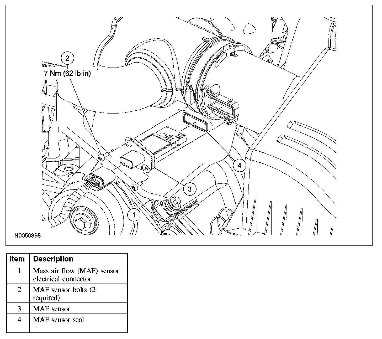 1. Disconnect the mass air flow (MAF) sensor electrical connector.