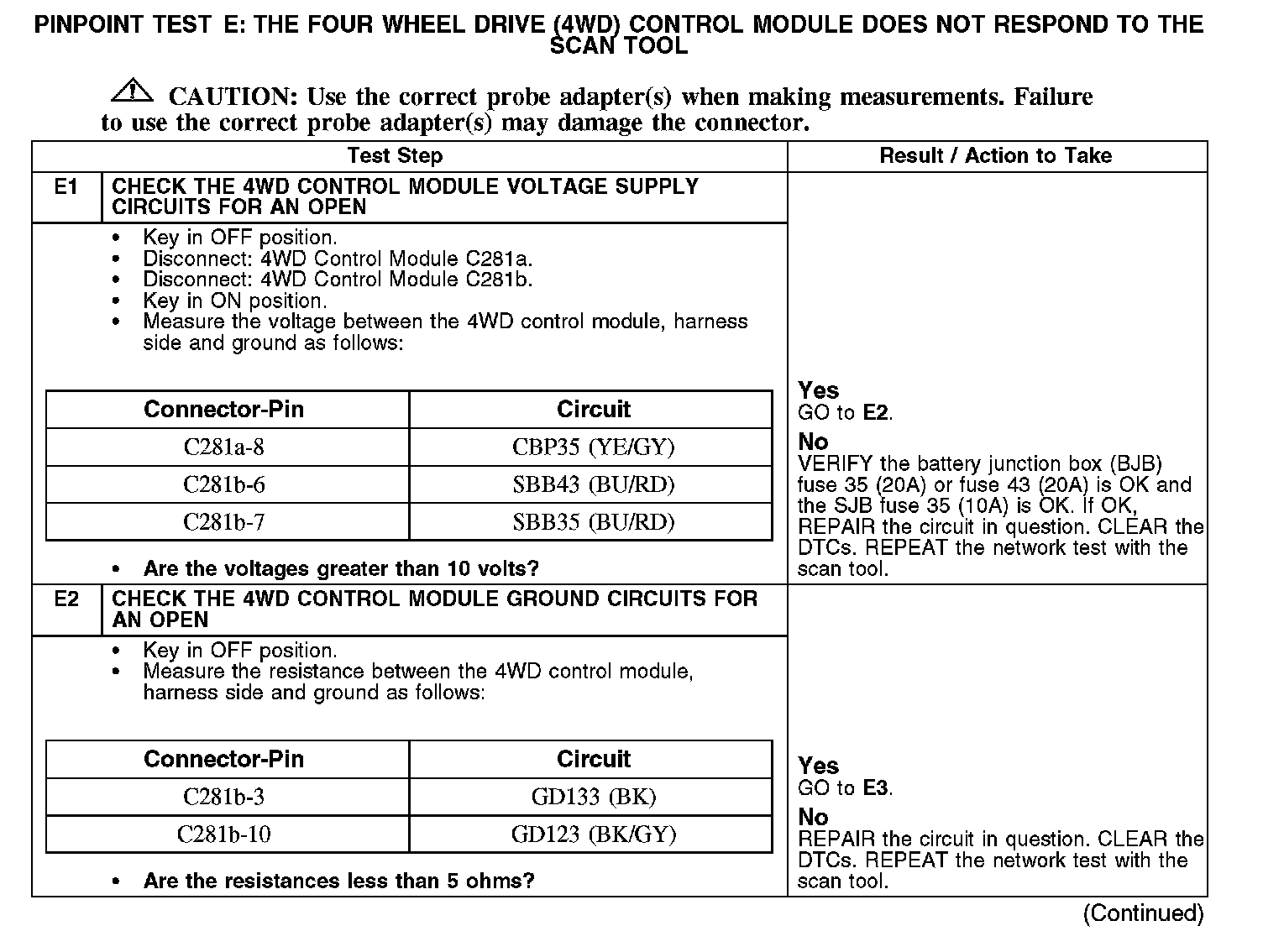 PINPOINT TEST E: THE FOUR WHEEL DRIVE 4WD) CONTROL MODULE DOES NOT RESPOND TO THE SCAN TOOLE1-E2: