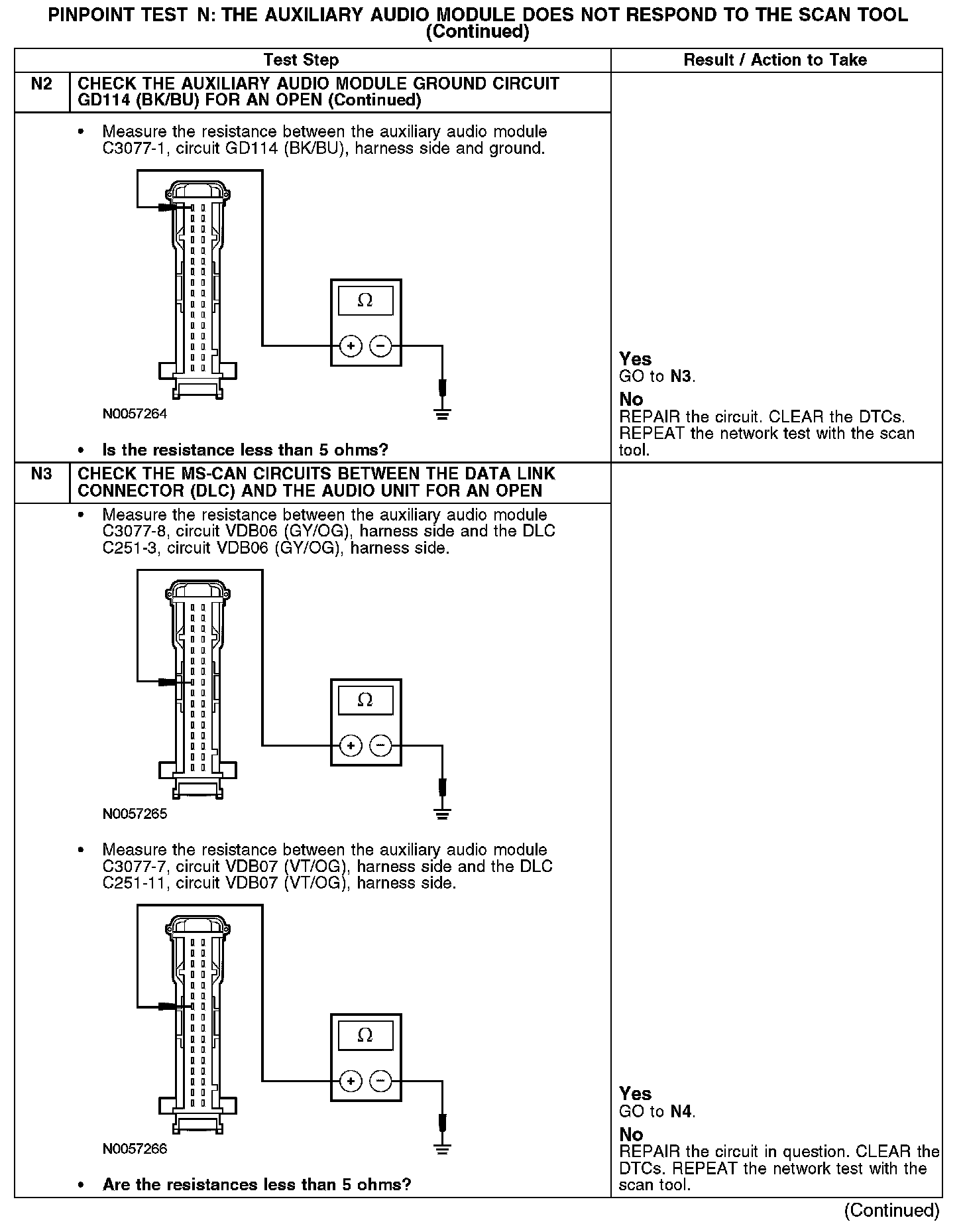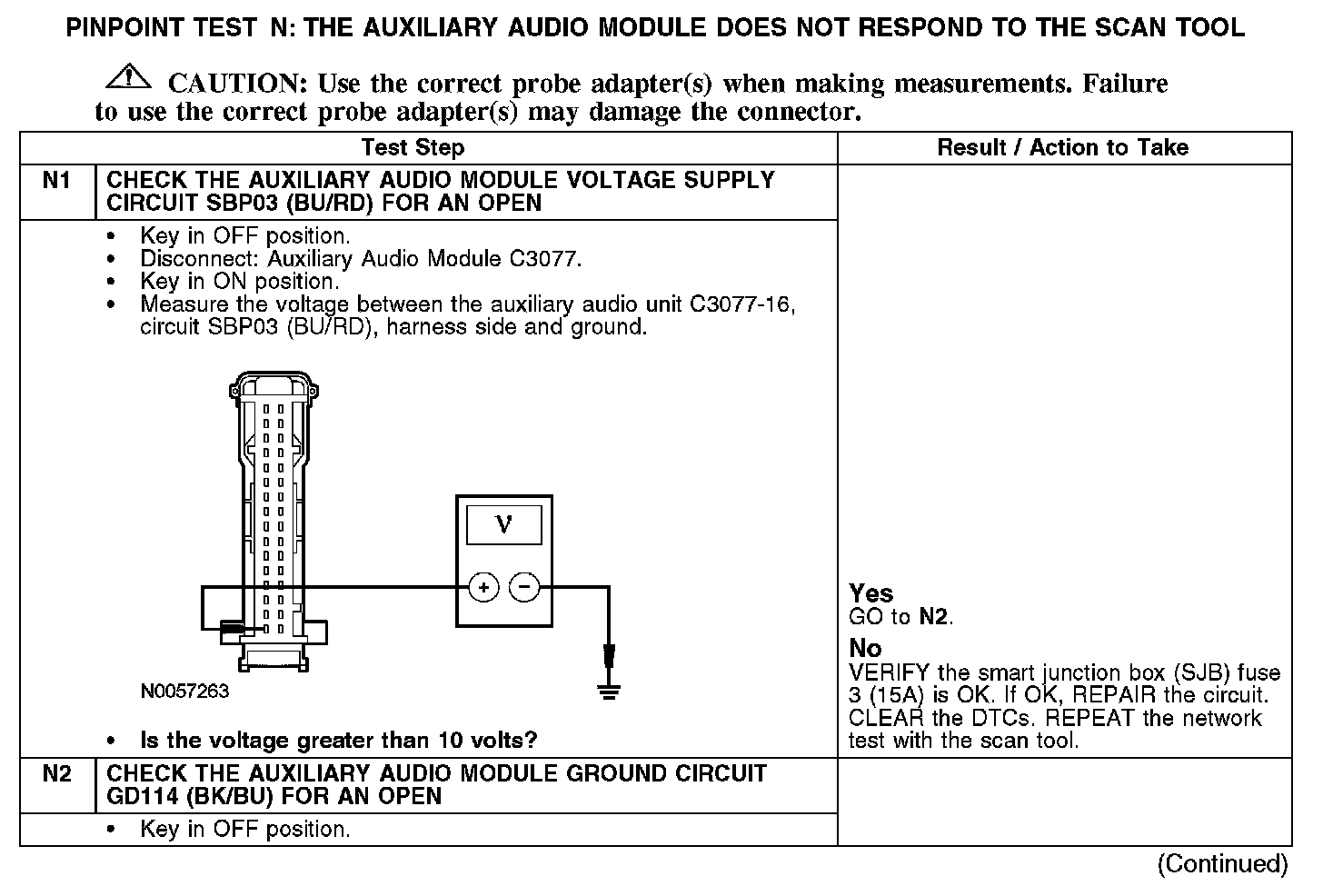 PINPOINT TEST N: THE AUXILIARY AUDIO MODULE DOES NOT RESPOND TO THE SCAN TOOLN1-N2: