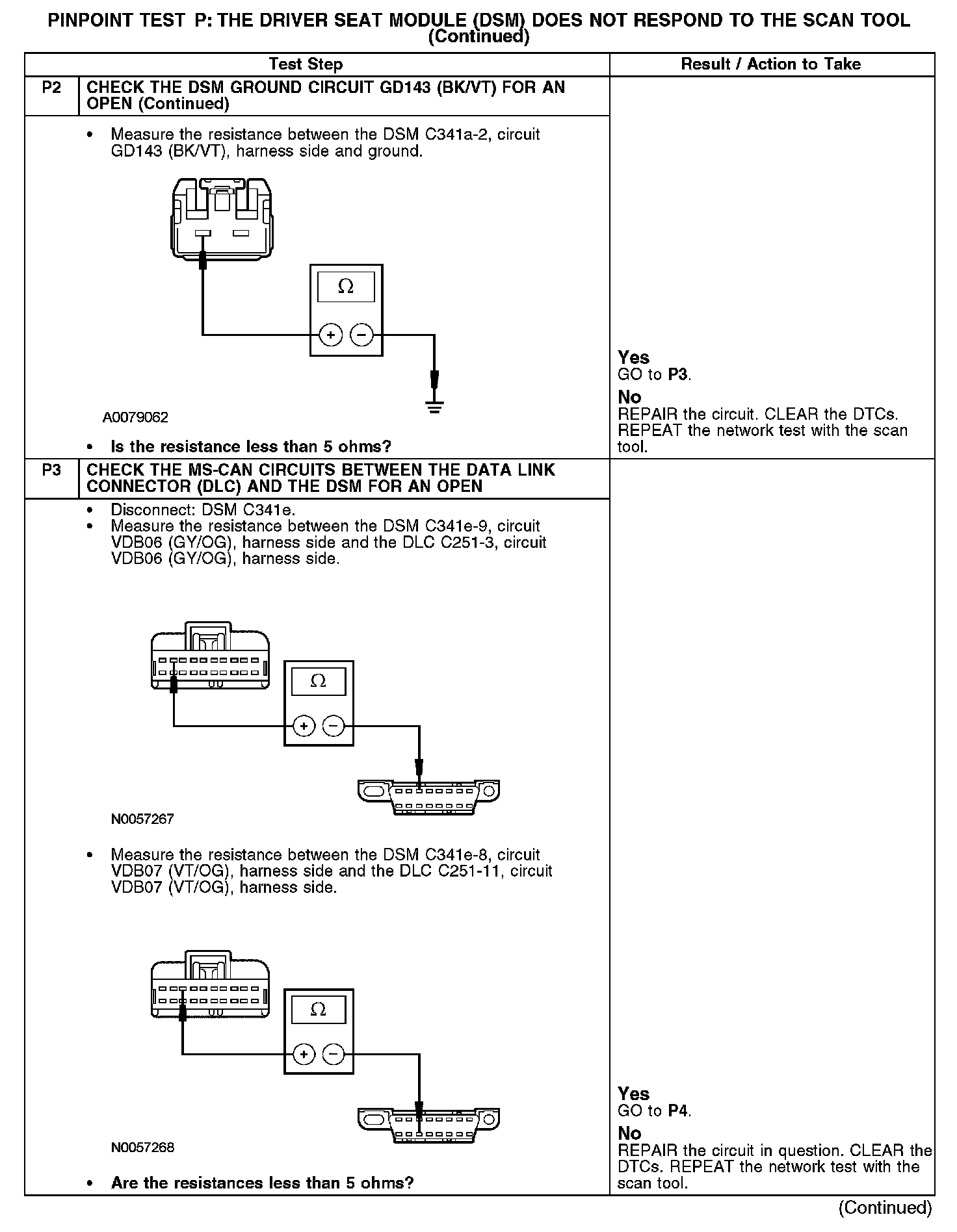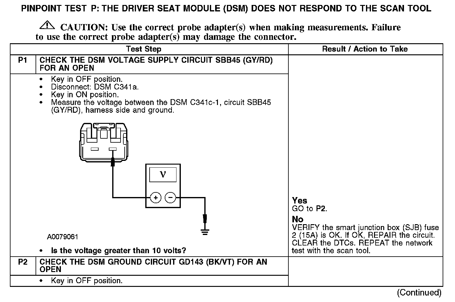 PINPOINT TEST P: THE DRIVER SEAT MODULE DSM) DOES NOT RESPOND TO THE SCAN TOOLP1-P2: