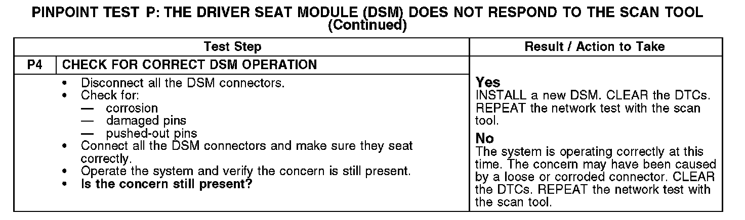 Test P: The Driver Seat Module (DSM) Does Not Respond To The Scan Tool