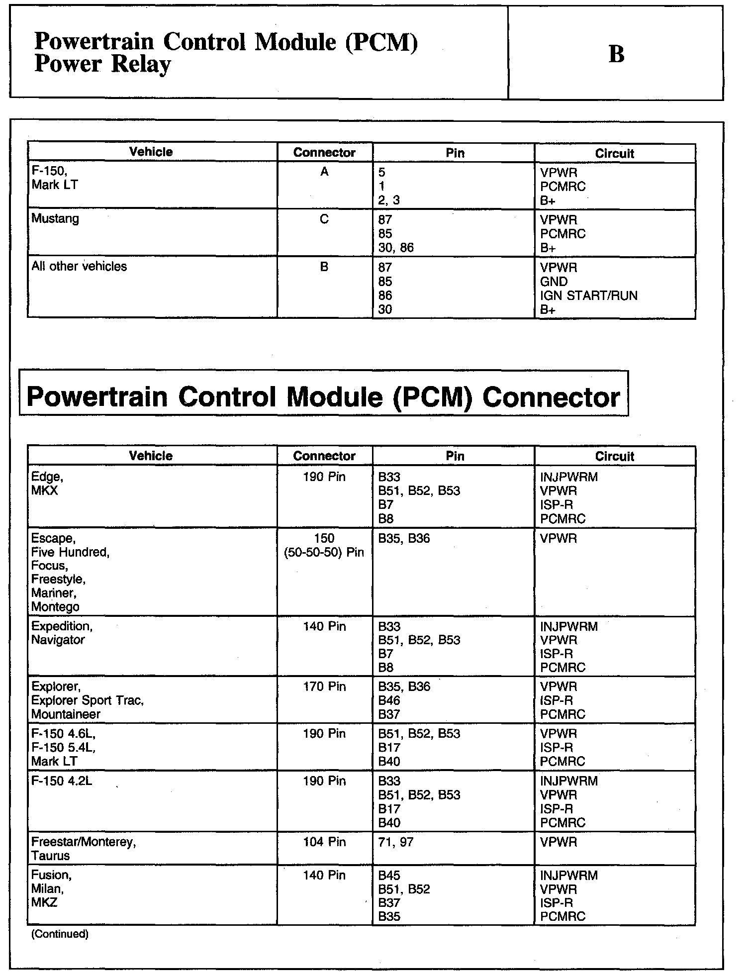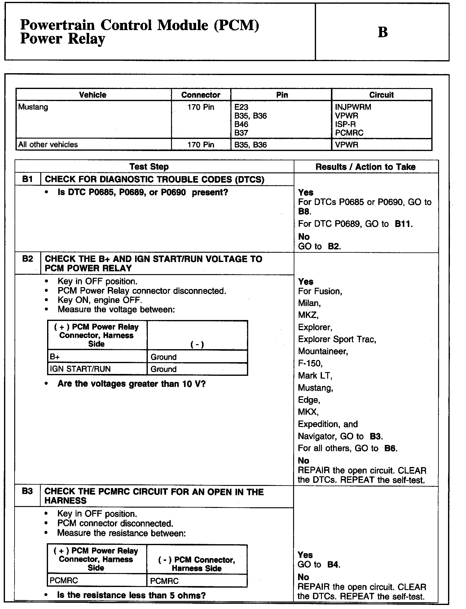 Home >> Lincoln >> 2007 >> Navigator 2WD V8-5.4L >> Repair and Diagnosis >> Powertrain Management >> Computers and Control Systems >> Testing and Inspection >> Pinpoint Tests >> Test B: Powertrain Control Module (PCM) Power Relay