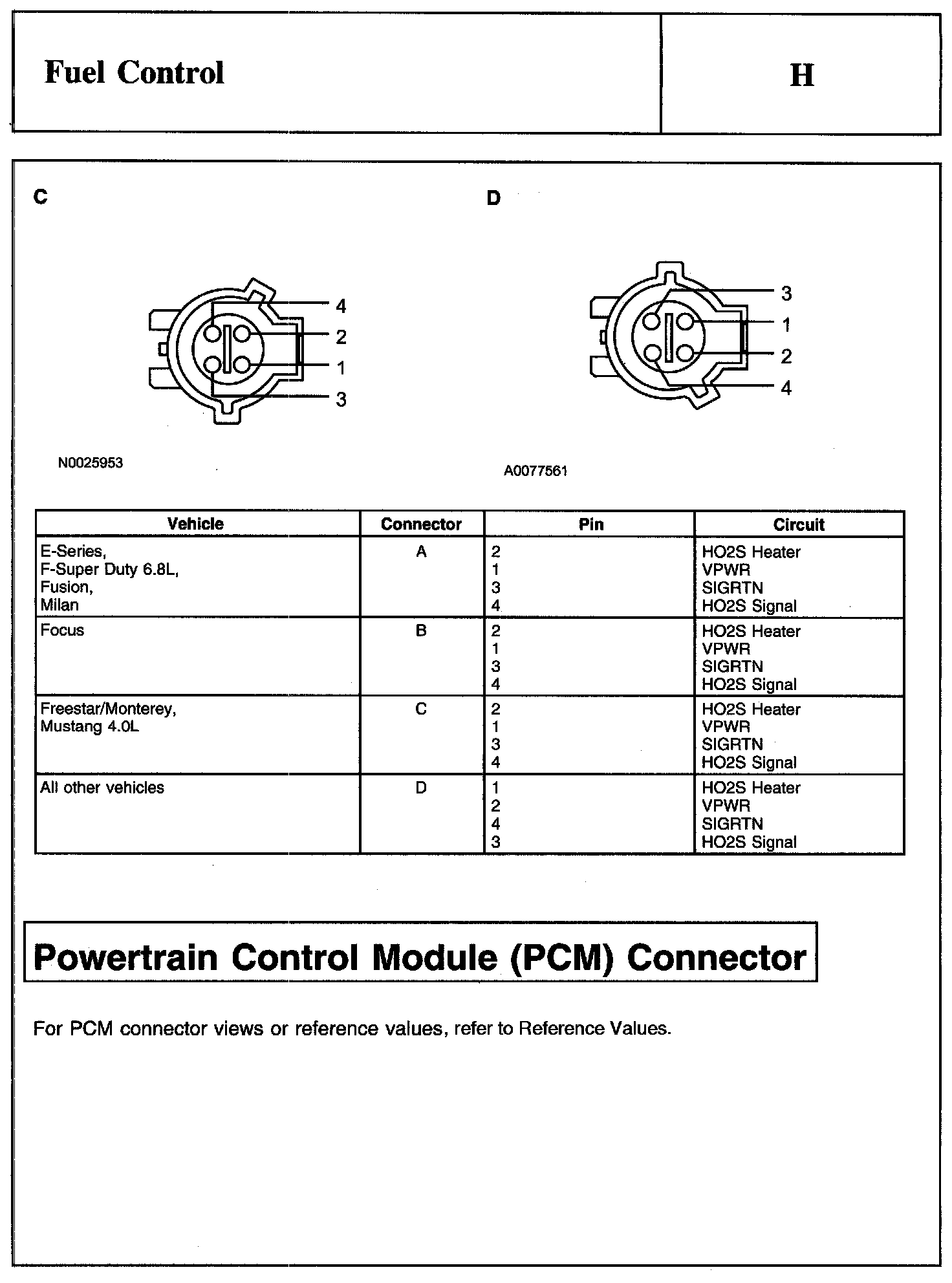 Heated Oxygen Sensor (HO2S) Connector And Powertrain Control Module (PCM) Connector: