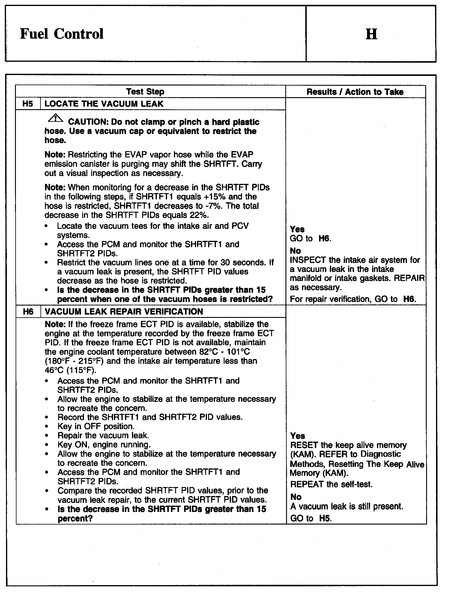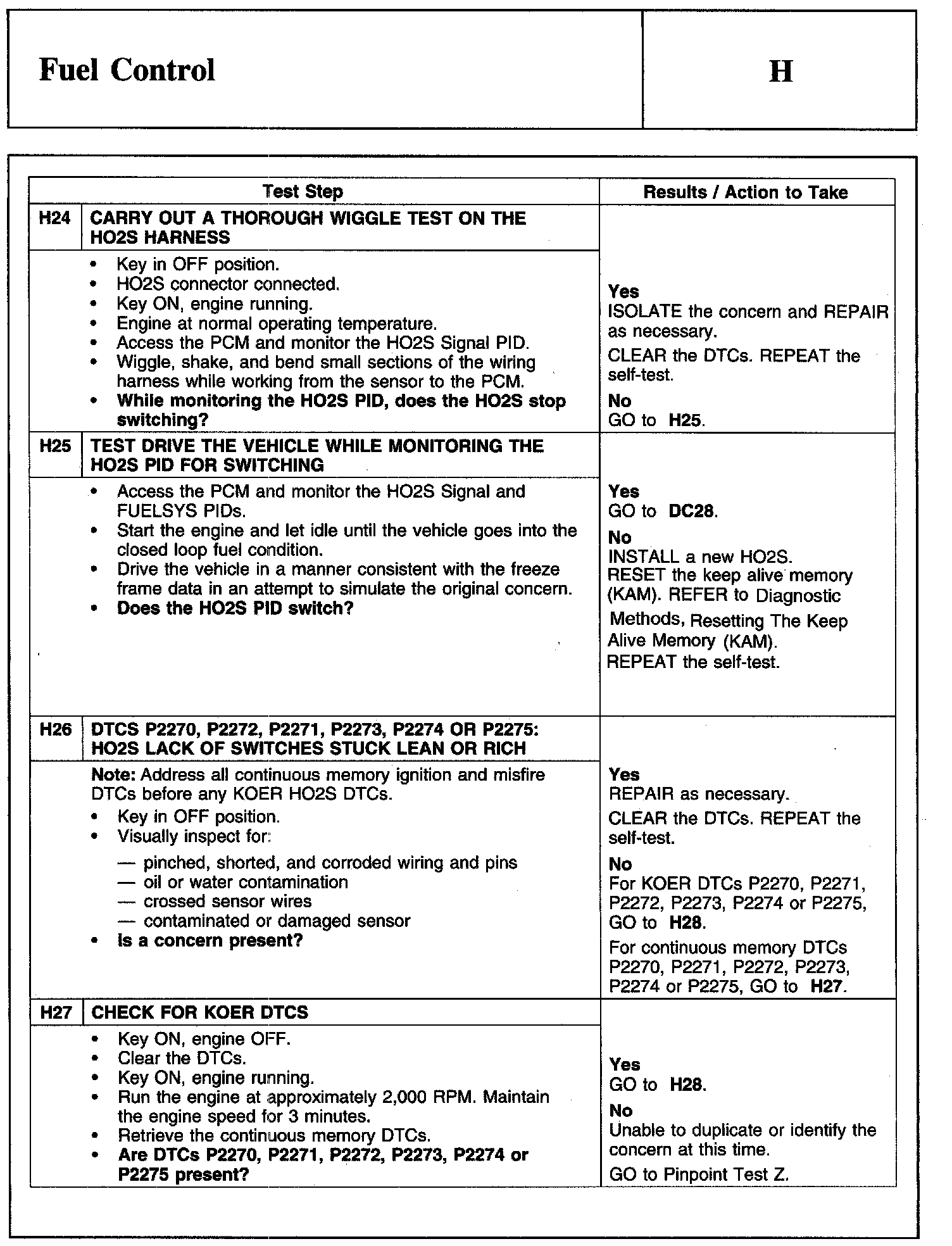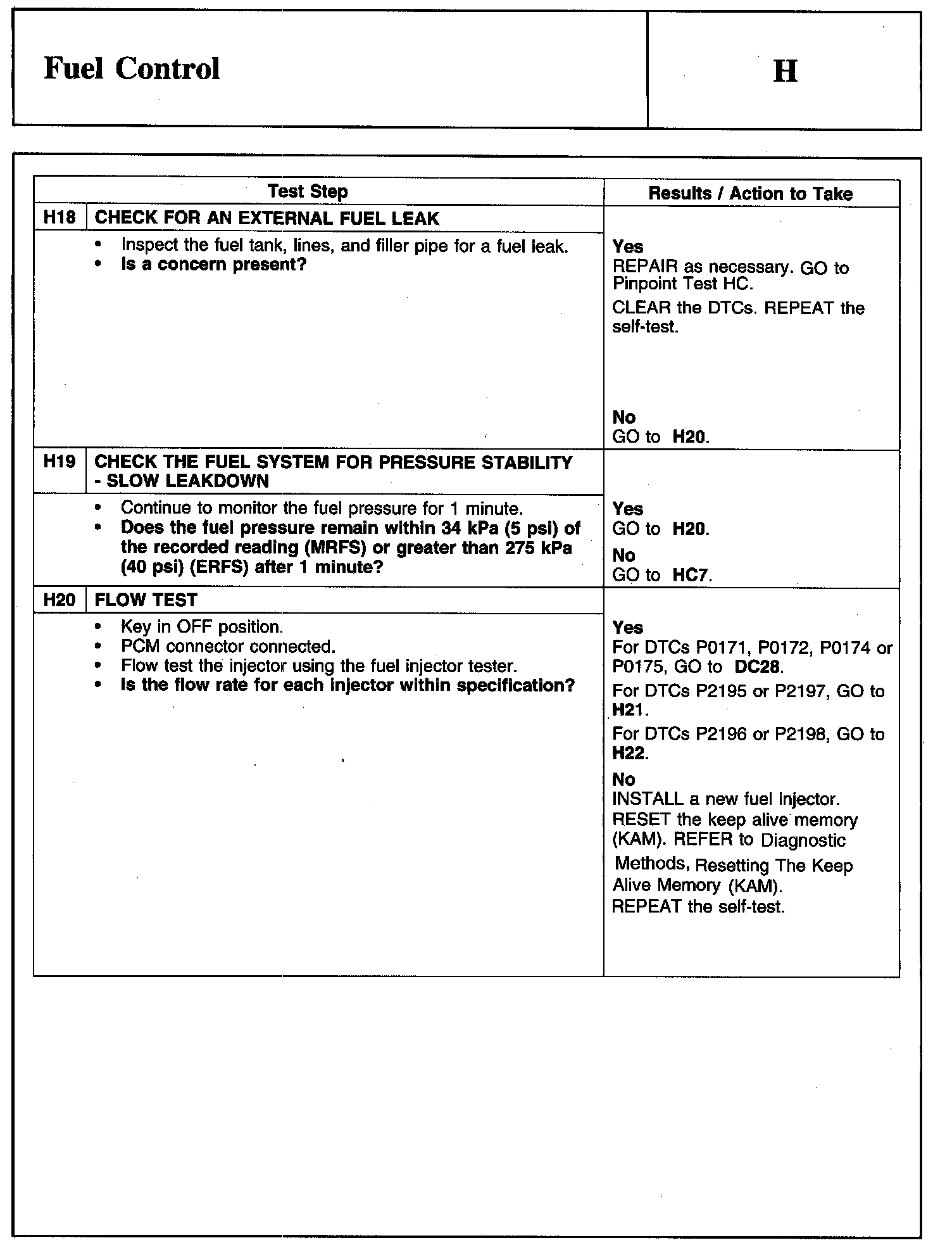 PINPOINT TEST H: FUEL CONTROLWarning And Schematic: