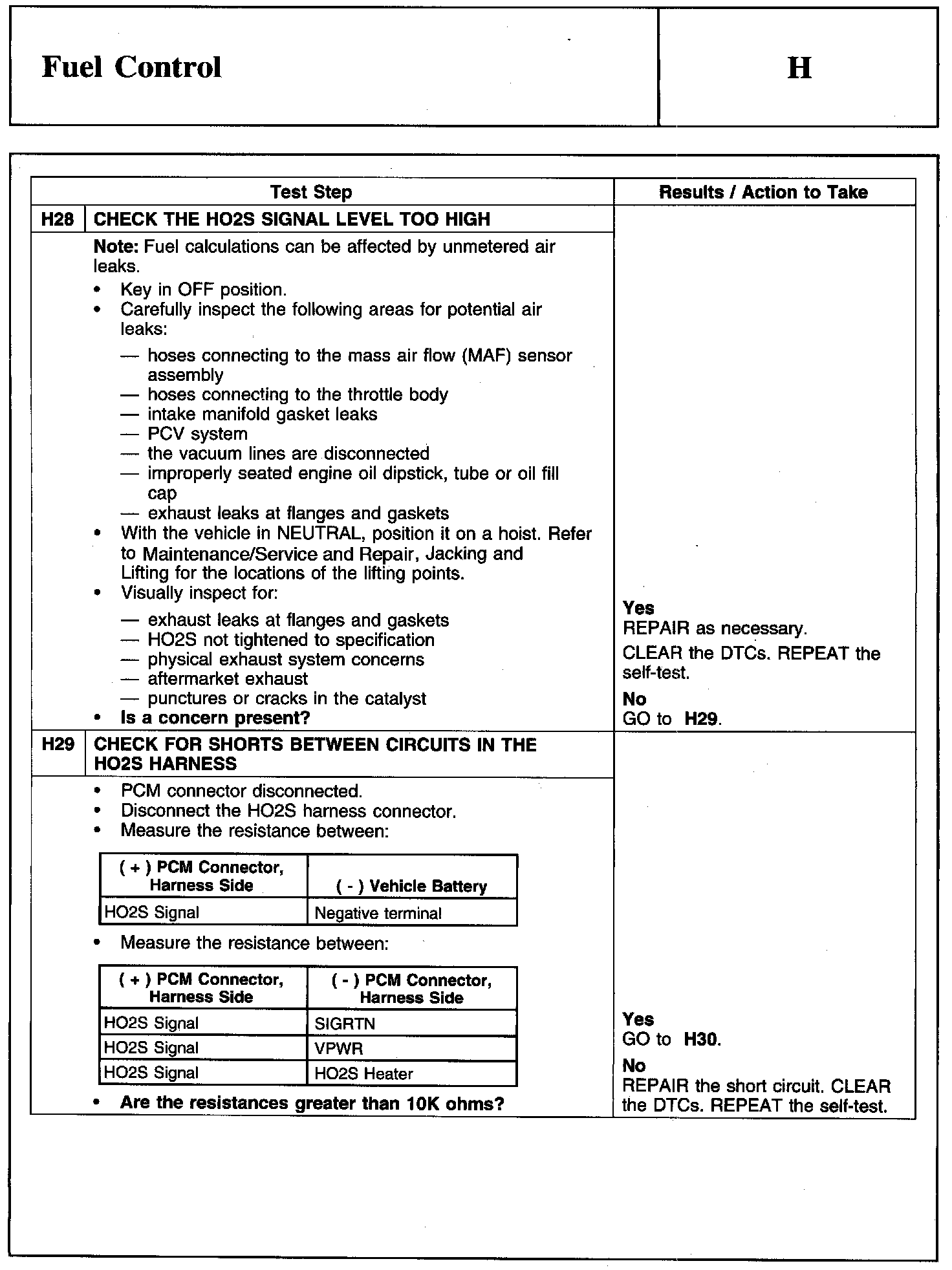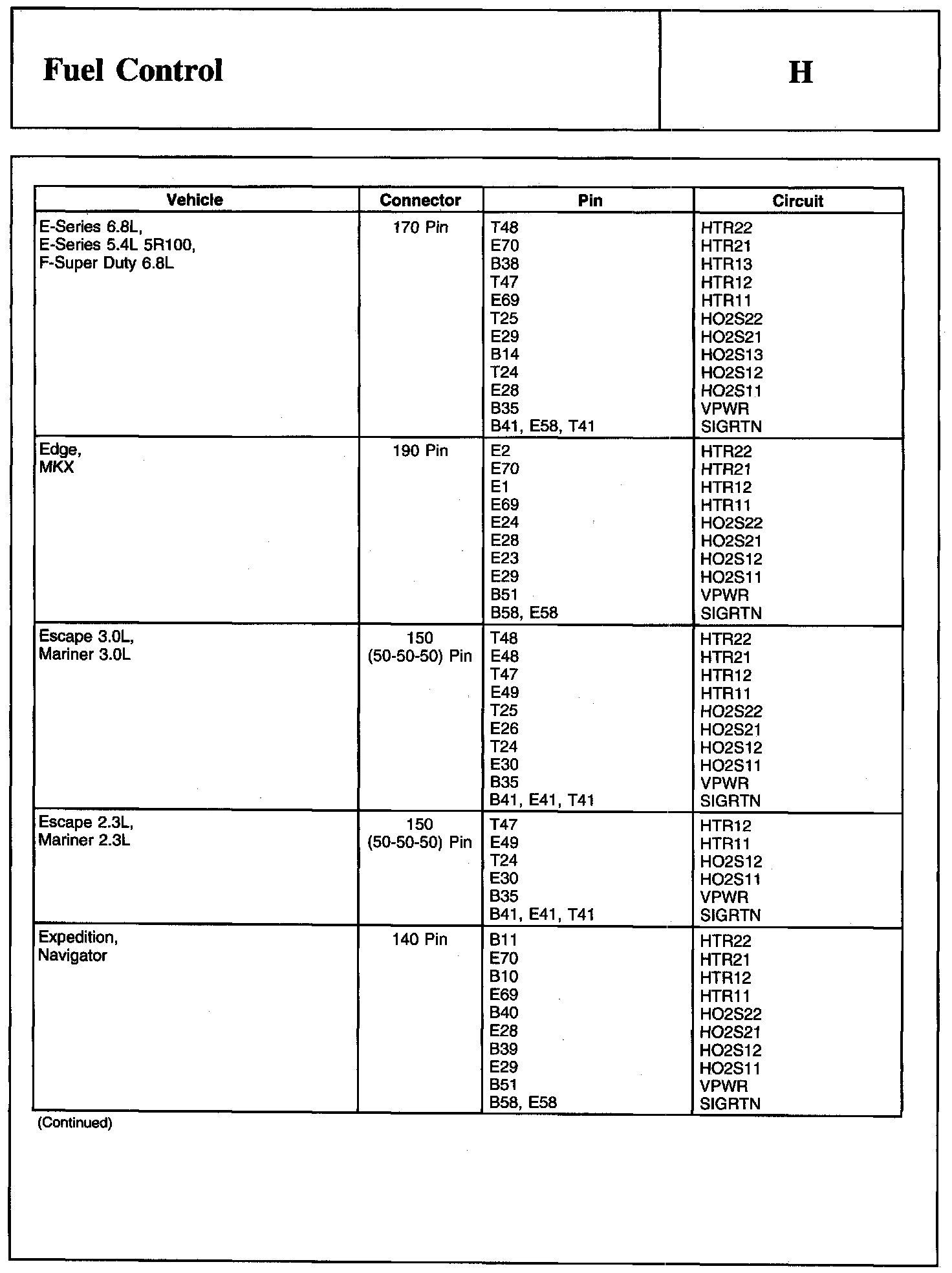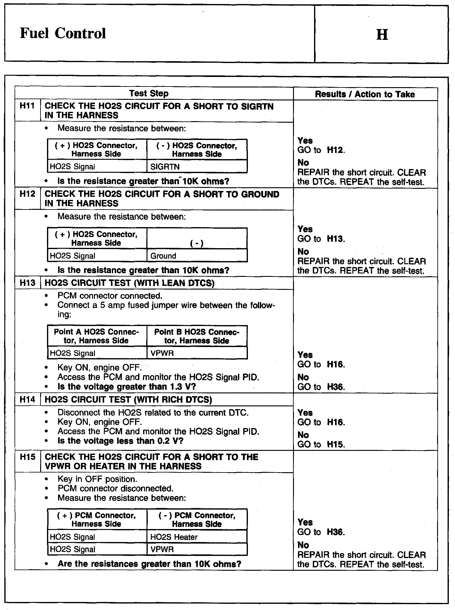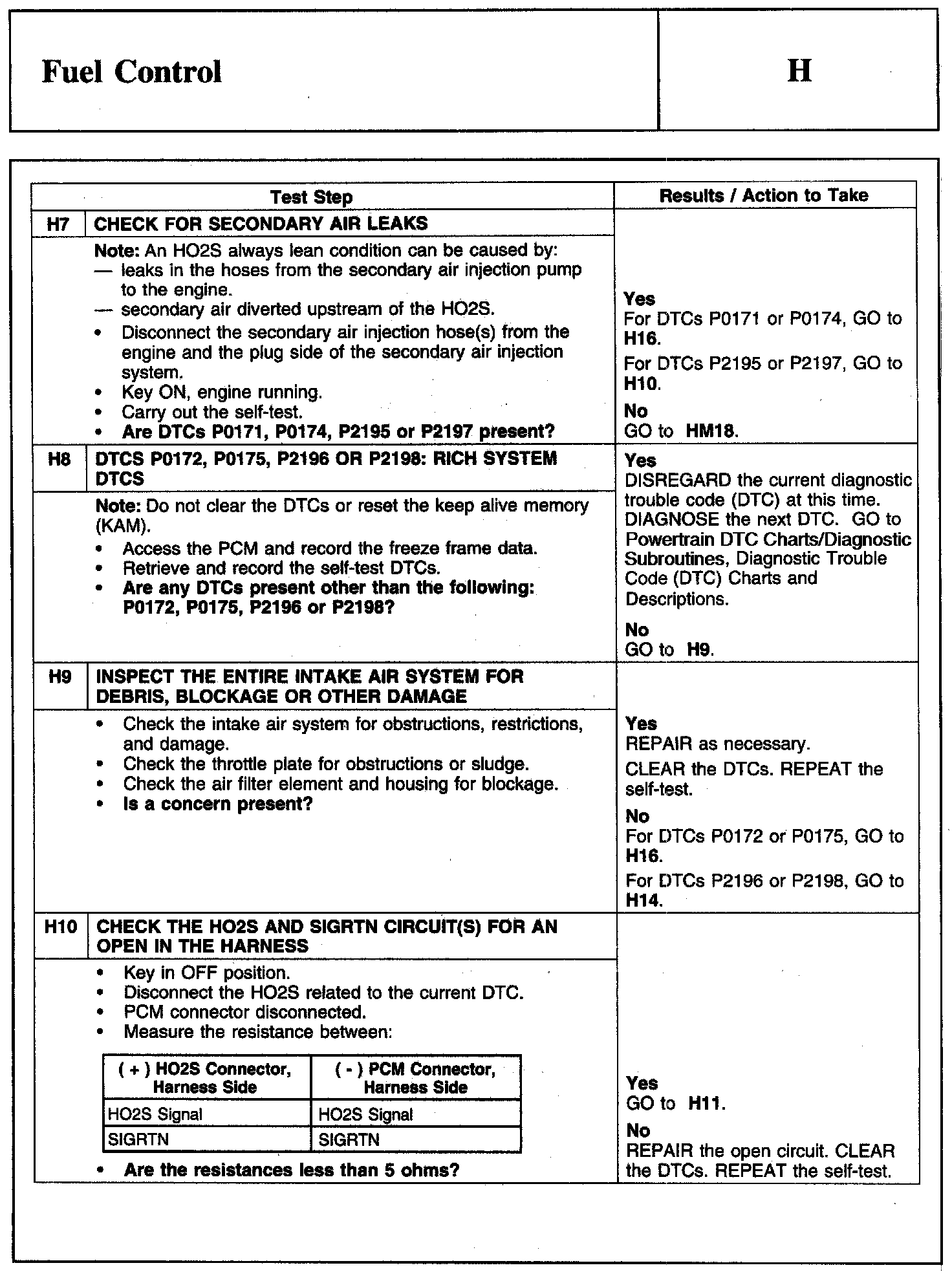 PINPOINT TEST H: FUEL CONTROLWarning And Schematic: