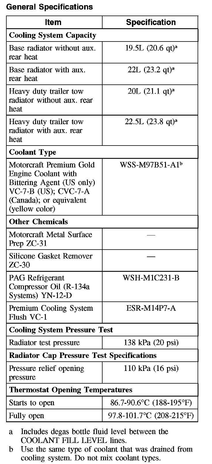 General Specifications: