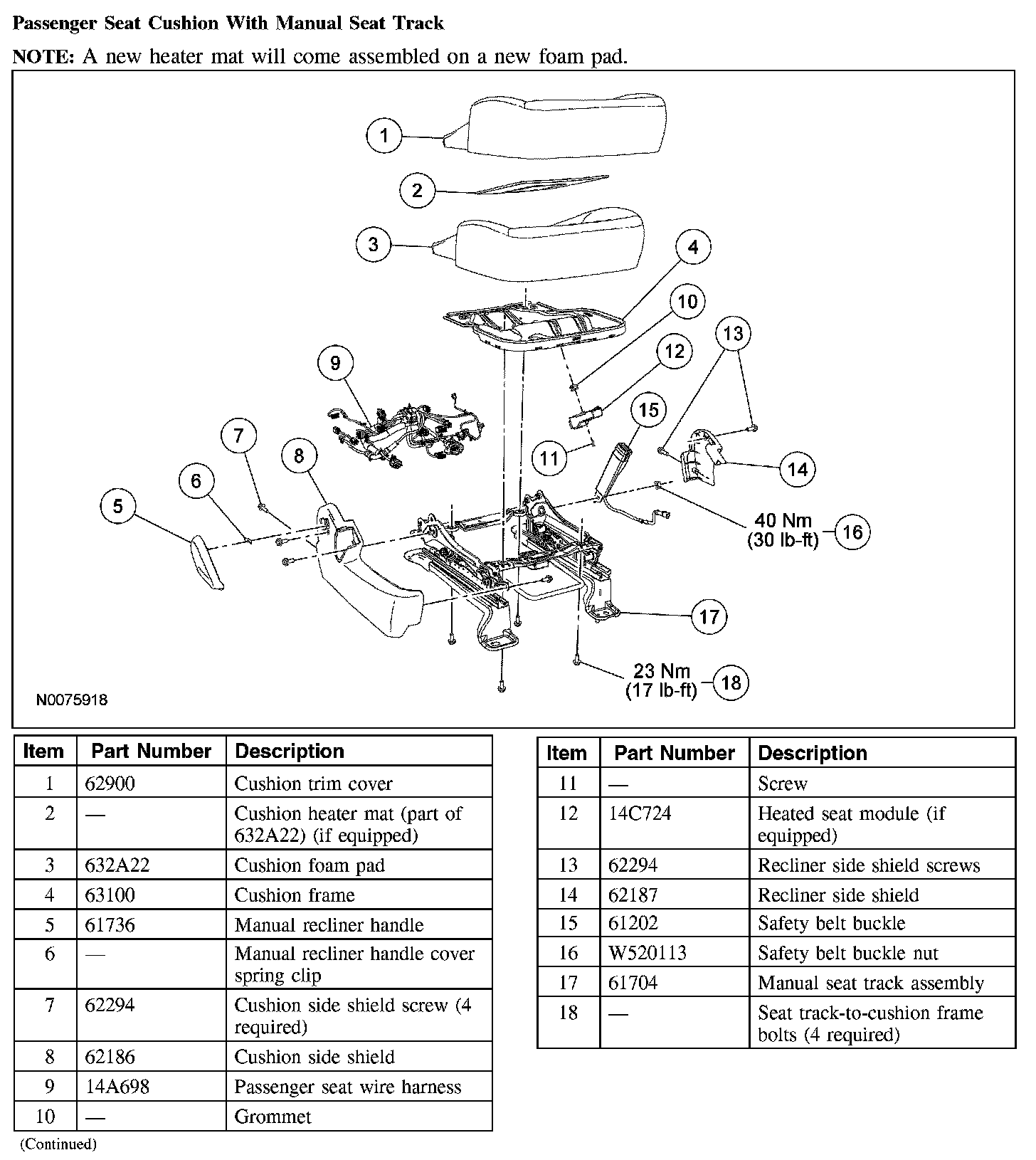 Driver Seat Cushion With Manual Seat Track (Part 2):