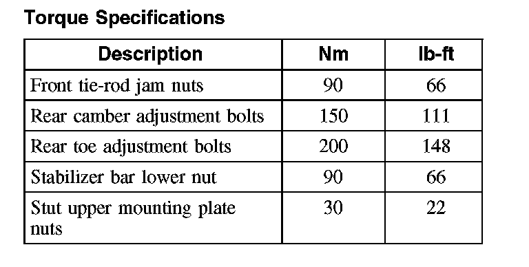 Torque Specifications: