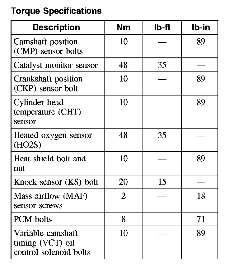 Torque Specifications:
