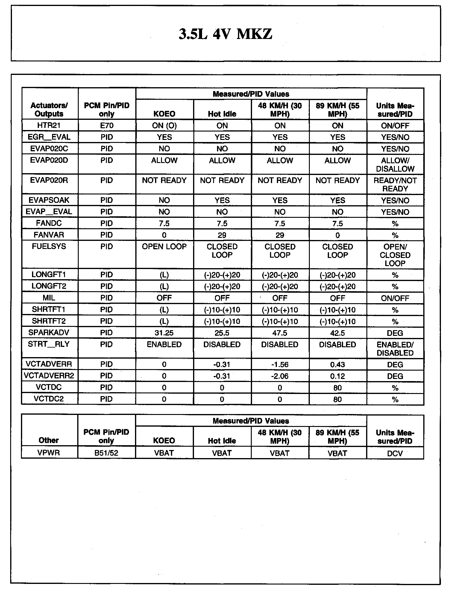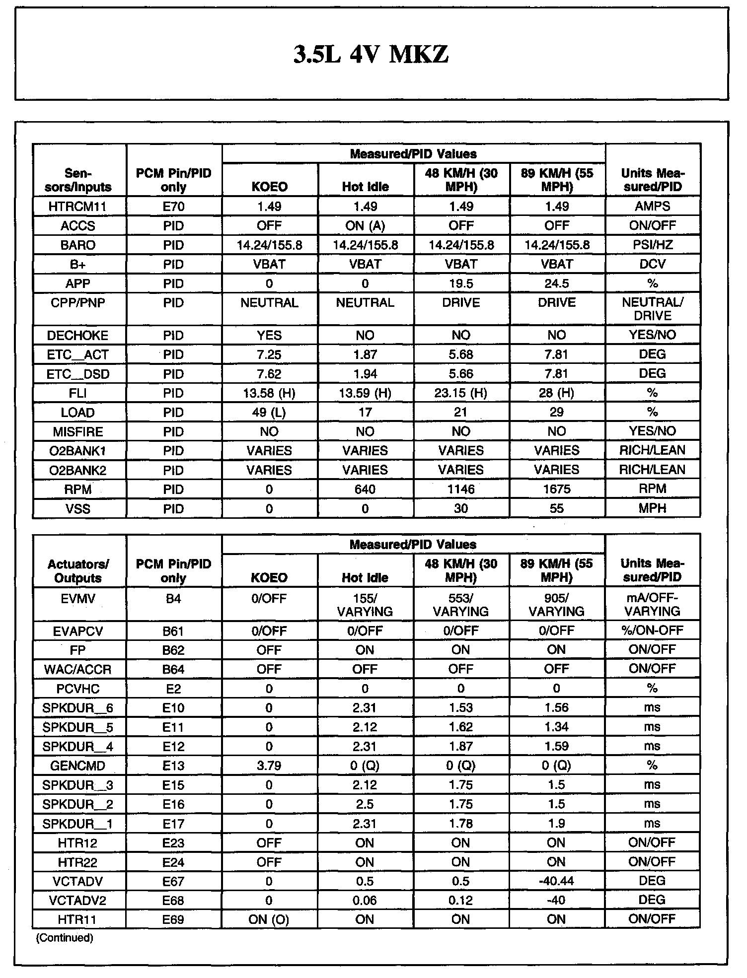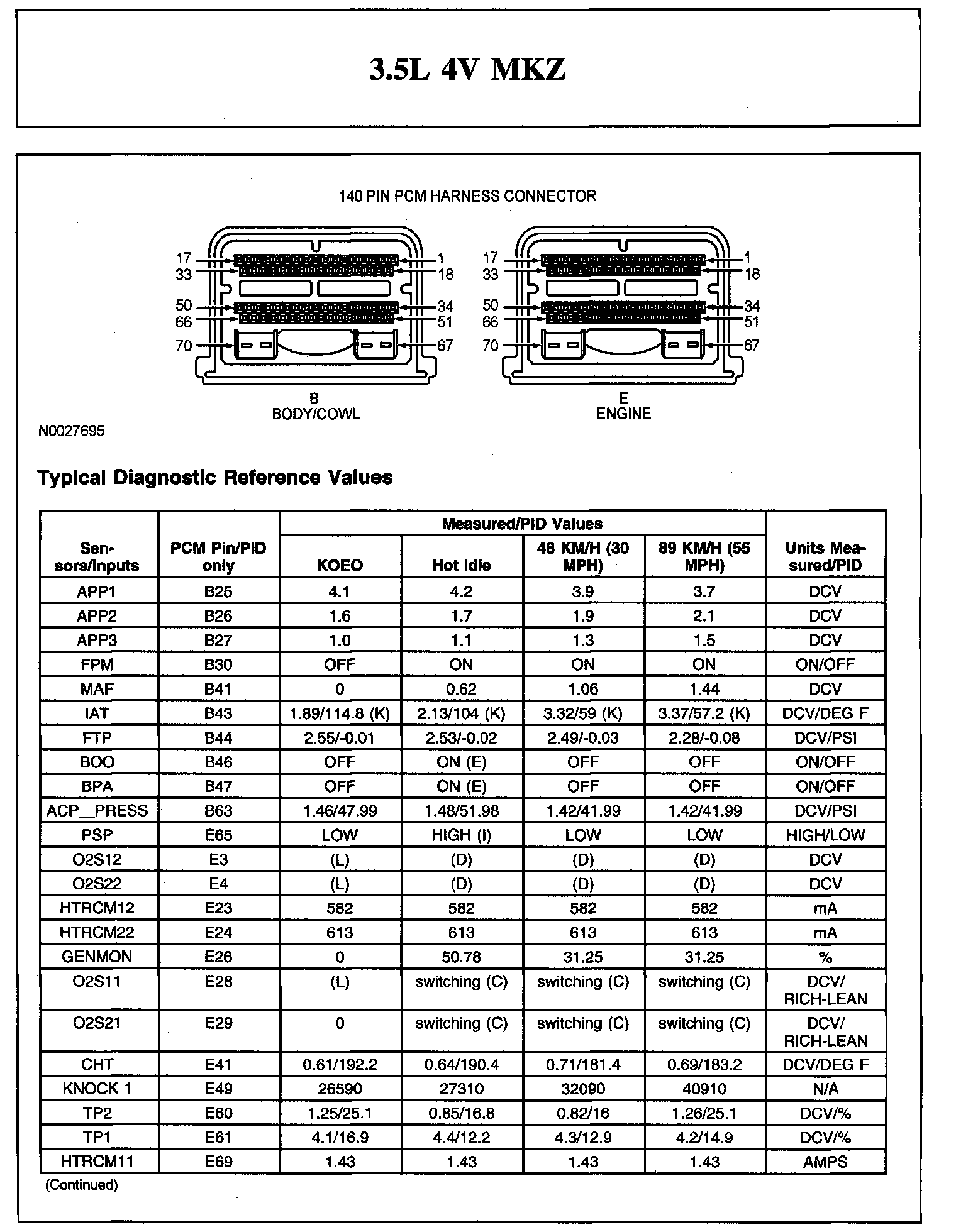 TYPICAL DIAGNOSTIC REFERENCE VALUES3.5L 4V MKZ (Part 1):