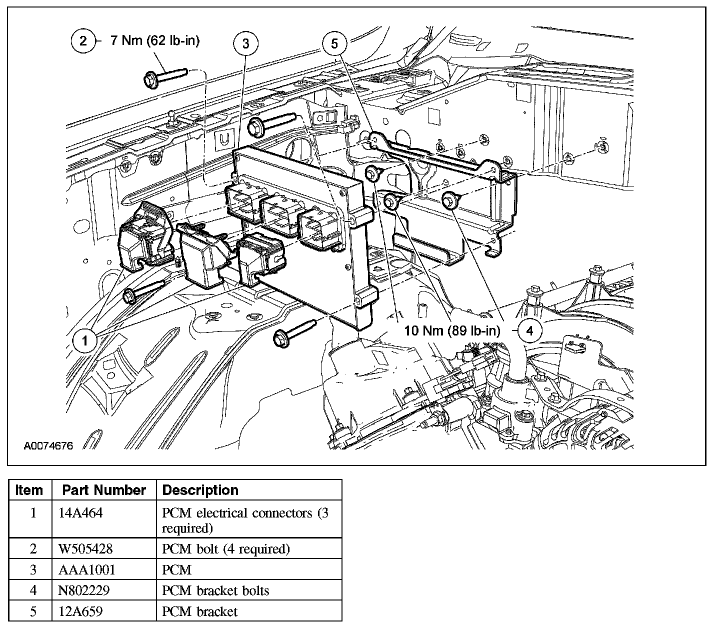 2. Install the PCM and the bolts.