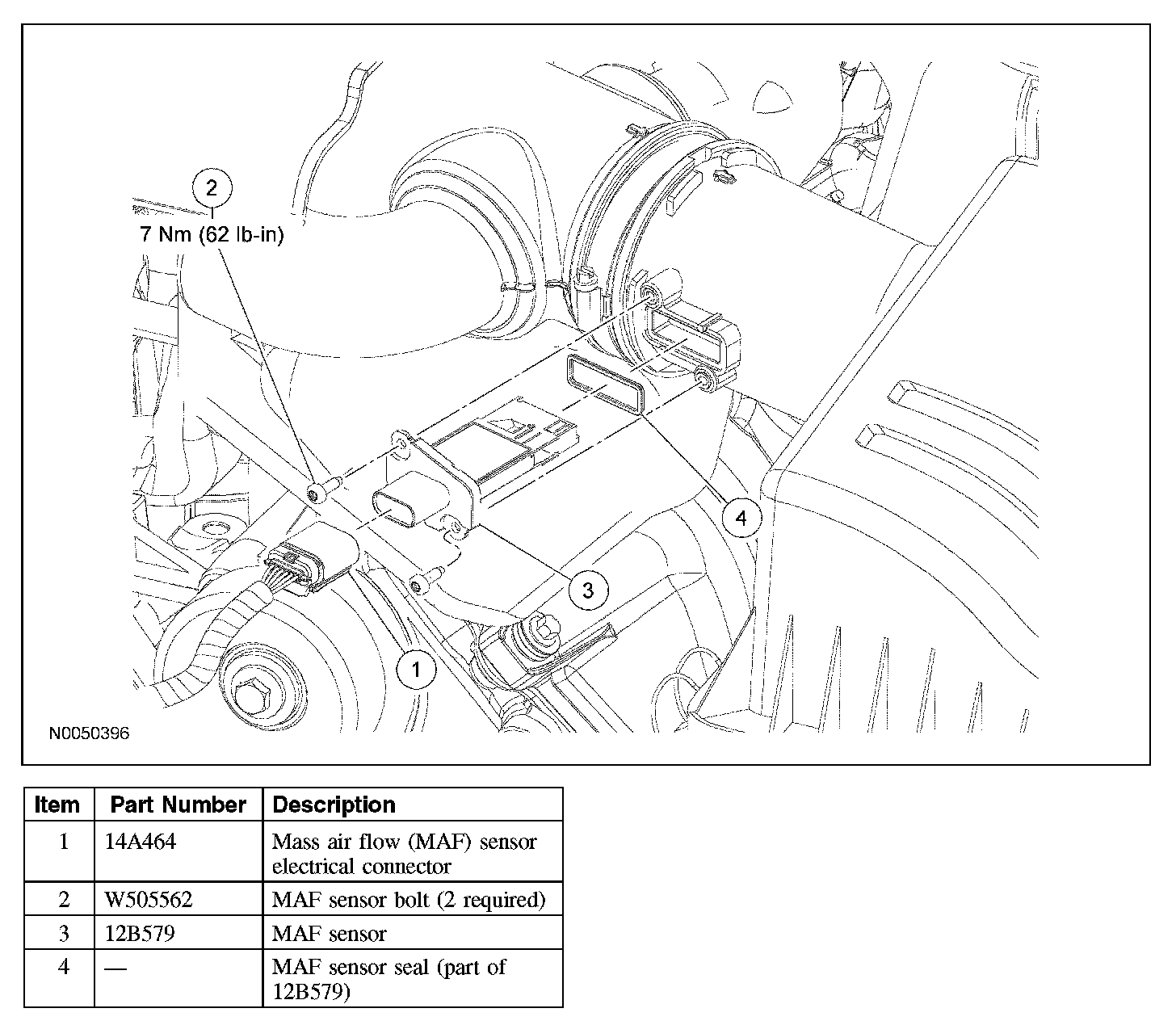 1. Disconnect the mass air flow (MAF) sensor electrical connector.