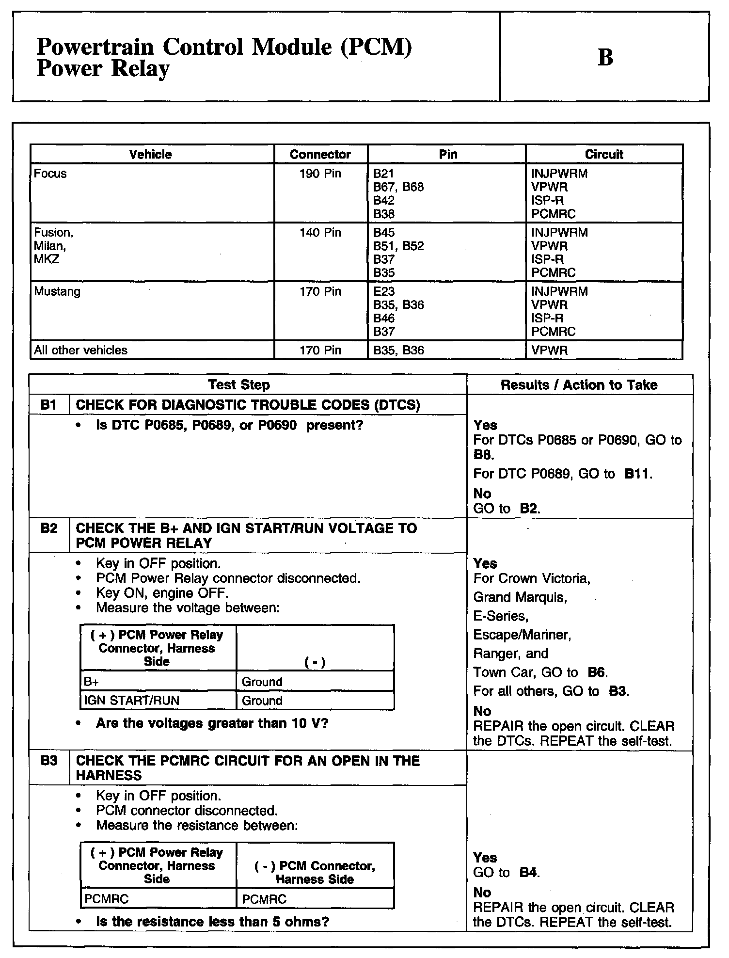 Test B: Powertrain Control Module (PCM) Power Relay