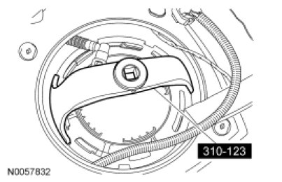 Using the Fuel Tank Sender Unit Wrench, remove the FP module lock ring.