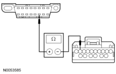 - Measure the resistance between the DLC C251-14, circuit VDB05 (WH) harness side and the VDM C2131a-9, circuit VDB05 (WH), harness side.