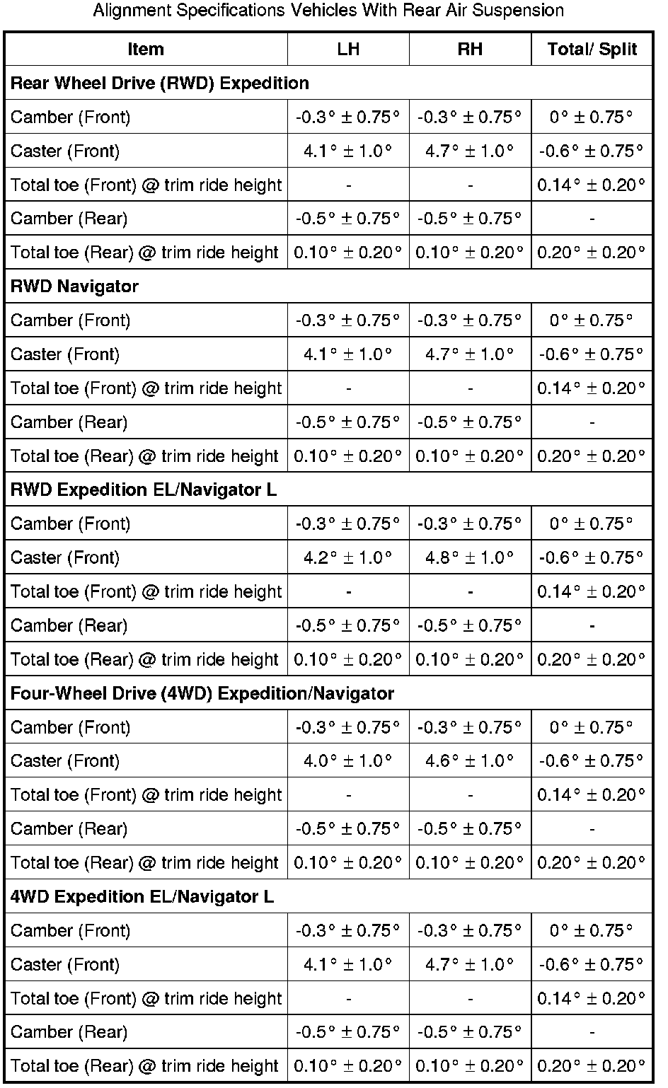 Alignment Specifications Vehicles With Rear Air Suspension:
