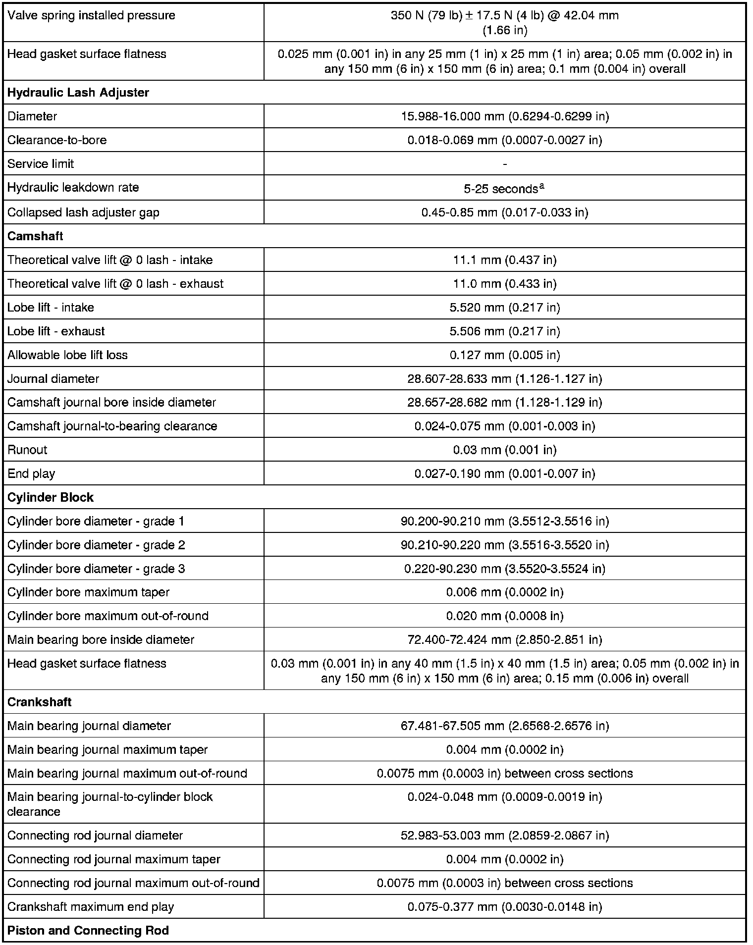 a The time required for the plunger to leak down 1.6 mm (0.062 in) of travel with 222 N force and leak-down fluid in the lash adjuster.