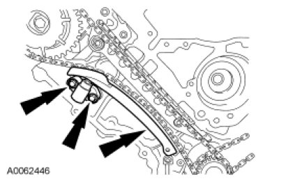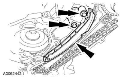 Position the LH and RH timing chain guides and install the 4 bolts.Tighten to 10 Nm (89 lb-in).