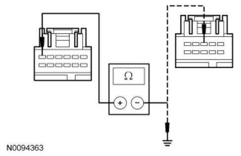 - Measure the resistance between the FDIM C2123-12, circuit RMN14 (GY/BN), harness side and the ACM C2253b-8, circuit RMN14 (GY/BN), harness side; and between the FDIM C2123-12, circuit RMN14 (GY/BN), harness side and ground.
