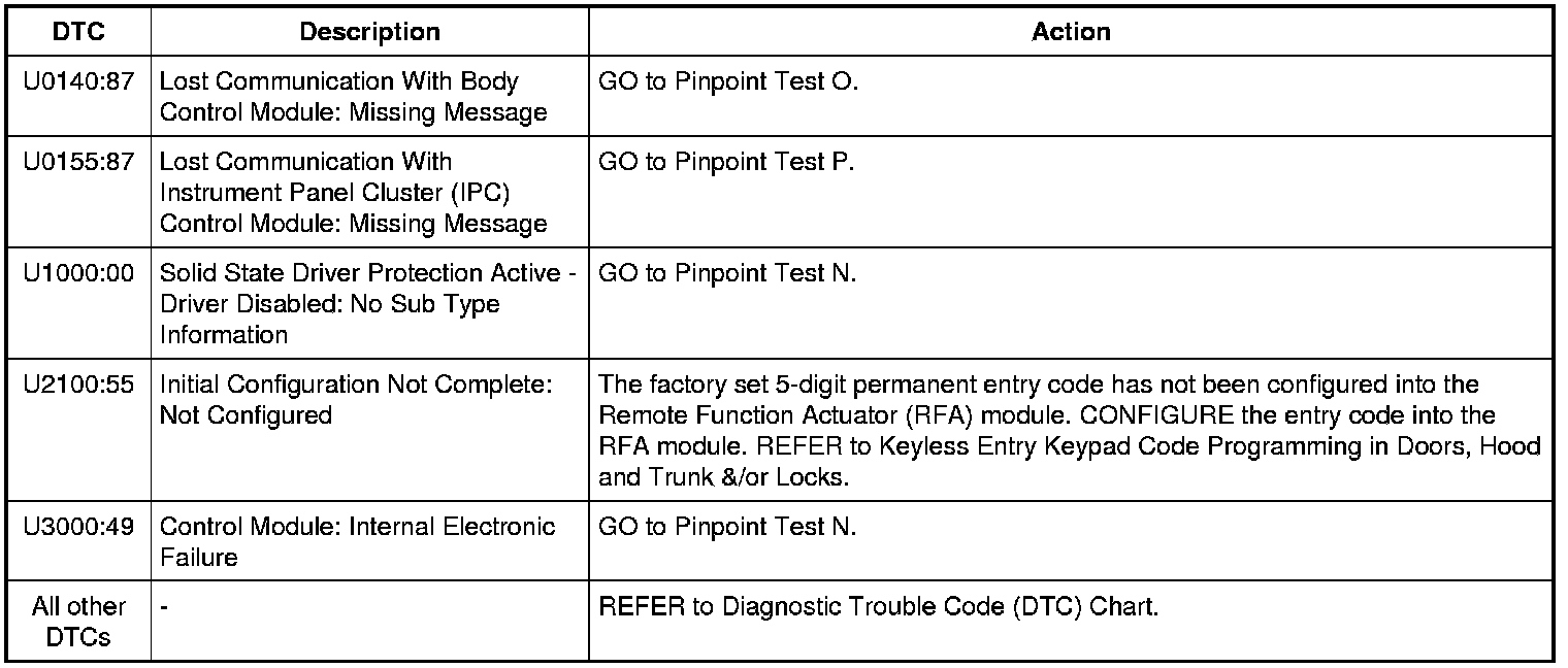 Remote Function Actuator (RFA) Module DTC Chart