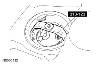 NOTE: Carefully install the Fuel Tank Sender Unit Wrench to avoid damaging the fuel level sensor when removing the lock ring.