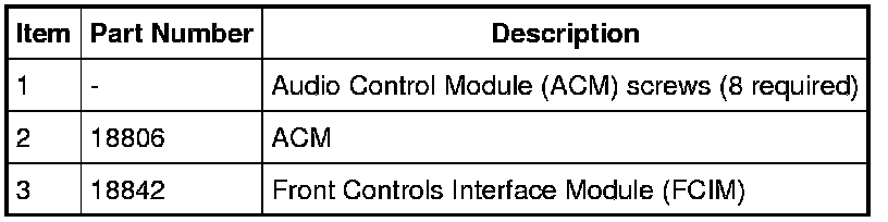 NOTE: It is not necessary to remove the Audio Control Module (ACM) to retrieve the part number. For additional information, refer to Audio Control Module (ACM) Self-Diagnostic Mode Audio Control Module (ACM) Self-Diagnostic Mode.