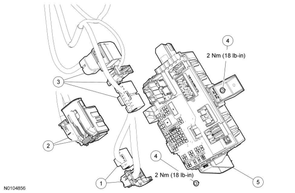 NOTE: Prior to the replacement of the module, it is necessary to upload the module configuration information to a scan tool. This information must be downloaded into the new Smart Junction Box (SJB) after installation. For additional information, refer to Information Bus. In the event that As-Built data entry is required (SJB will not communicate), all Remote Keyless Entry (RKE) devices must be programmed to the new SJB. A minimum of 2 devices are necessary to complete the configuration and turn off the flashing interior lights.