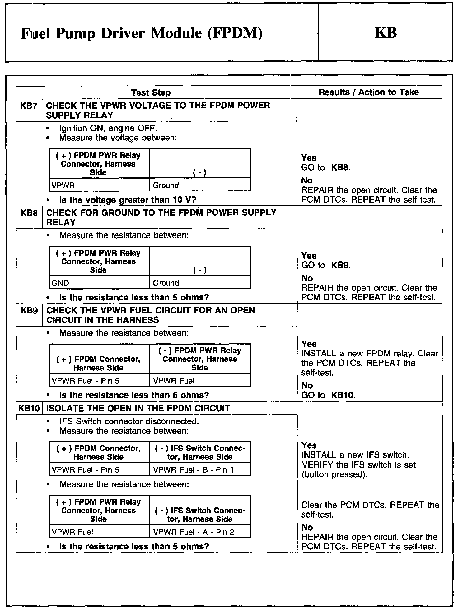 Test KB: Fuel Pump Driver Module (FPDM)