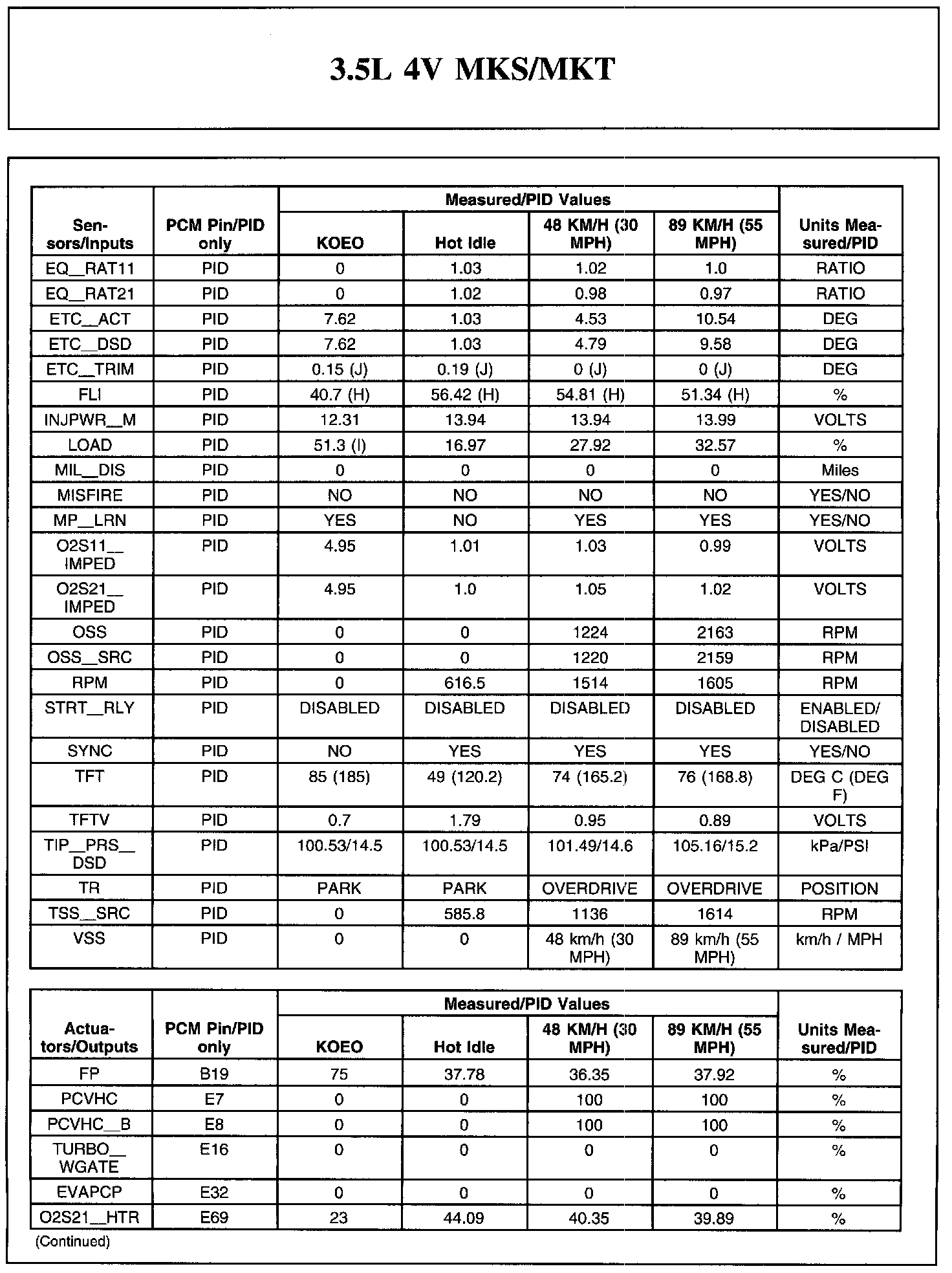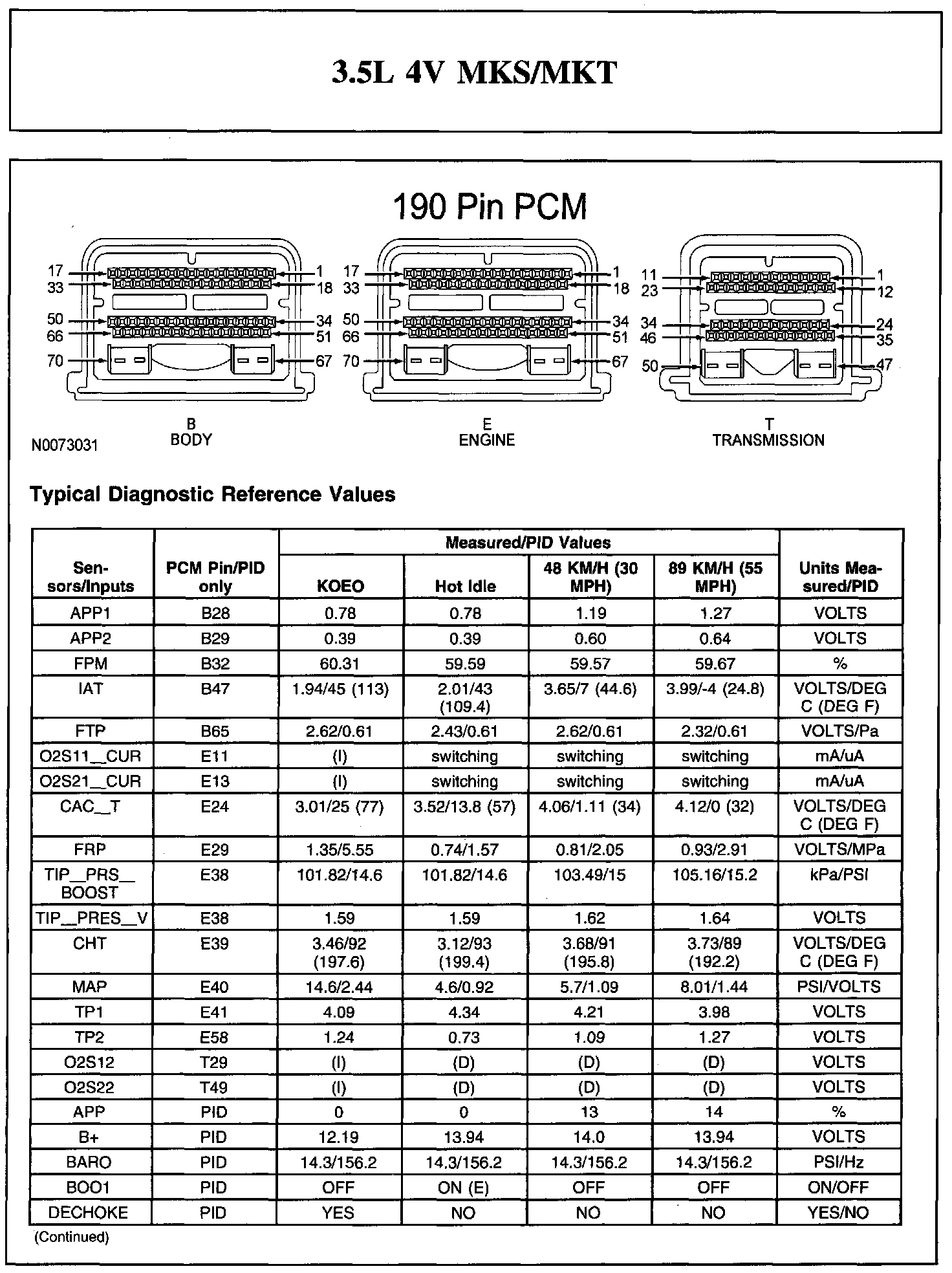 Home >> Lincoln >> 2011 >> MKS AWD V6-3.5L Turbo >> Repair and Diagnosis >> Powertrain Management >> Computers and Control Systems >> Testing and Inspection >> Scan Tool Testing and Procedures >> Typical Diagnostic Reference Values