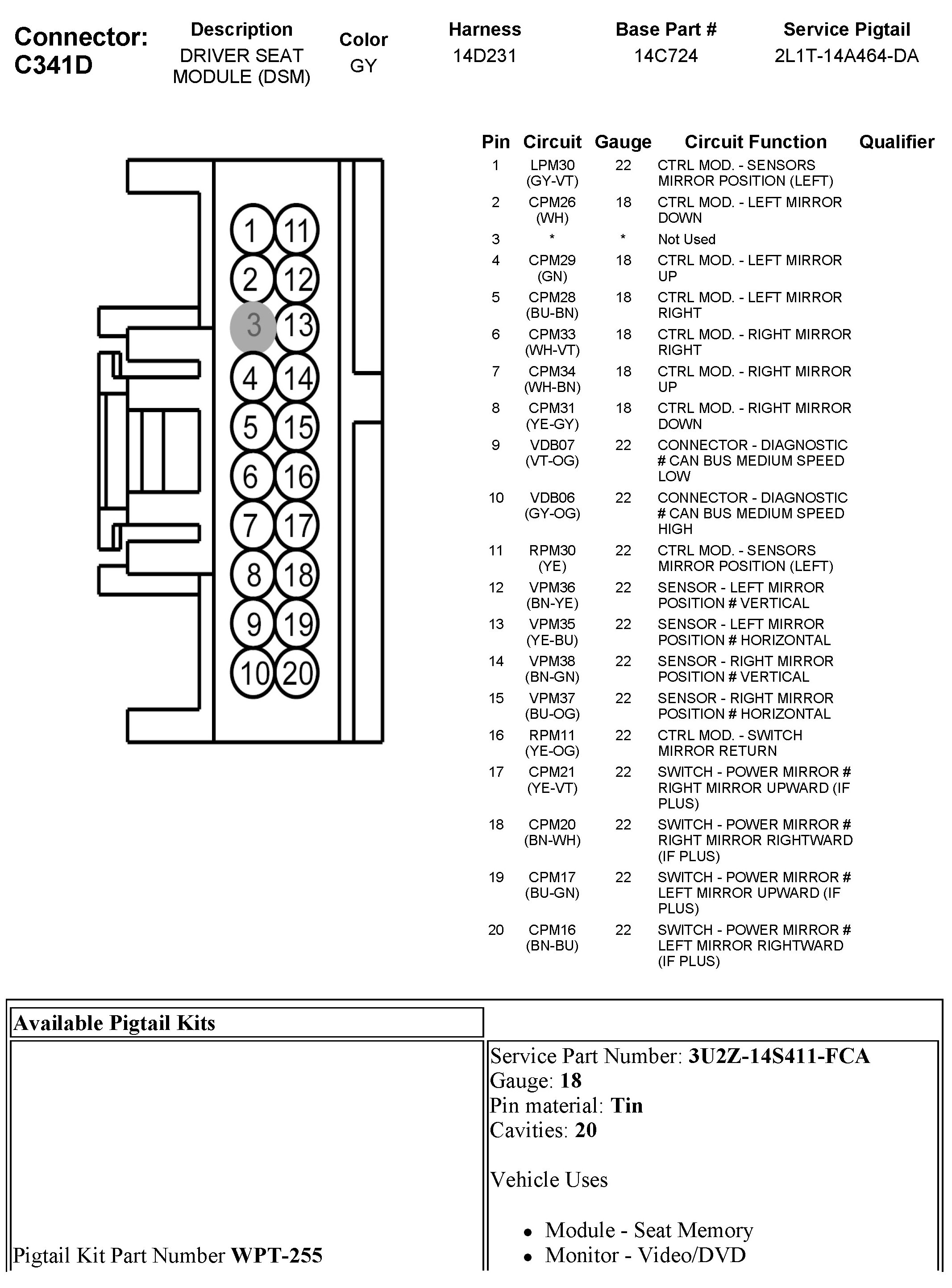 C341D Driver Seat Module (DSM)