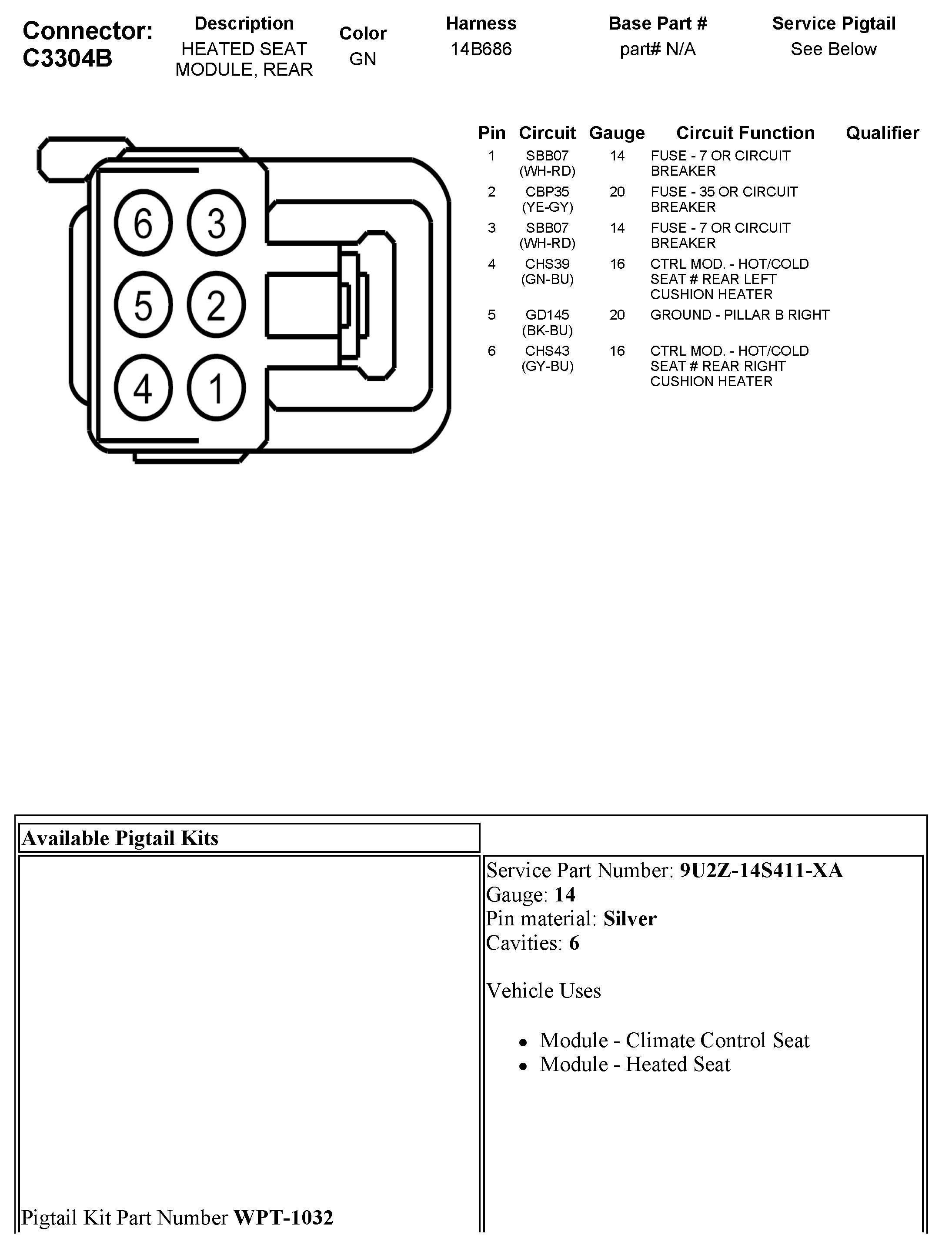C3304B Heated Seat Module, Rear